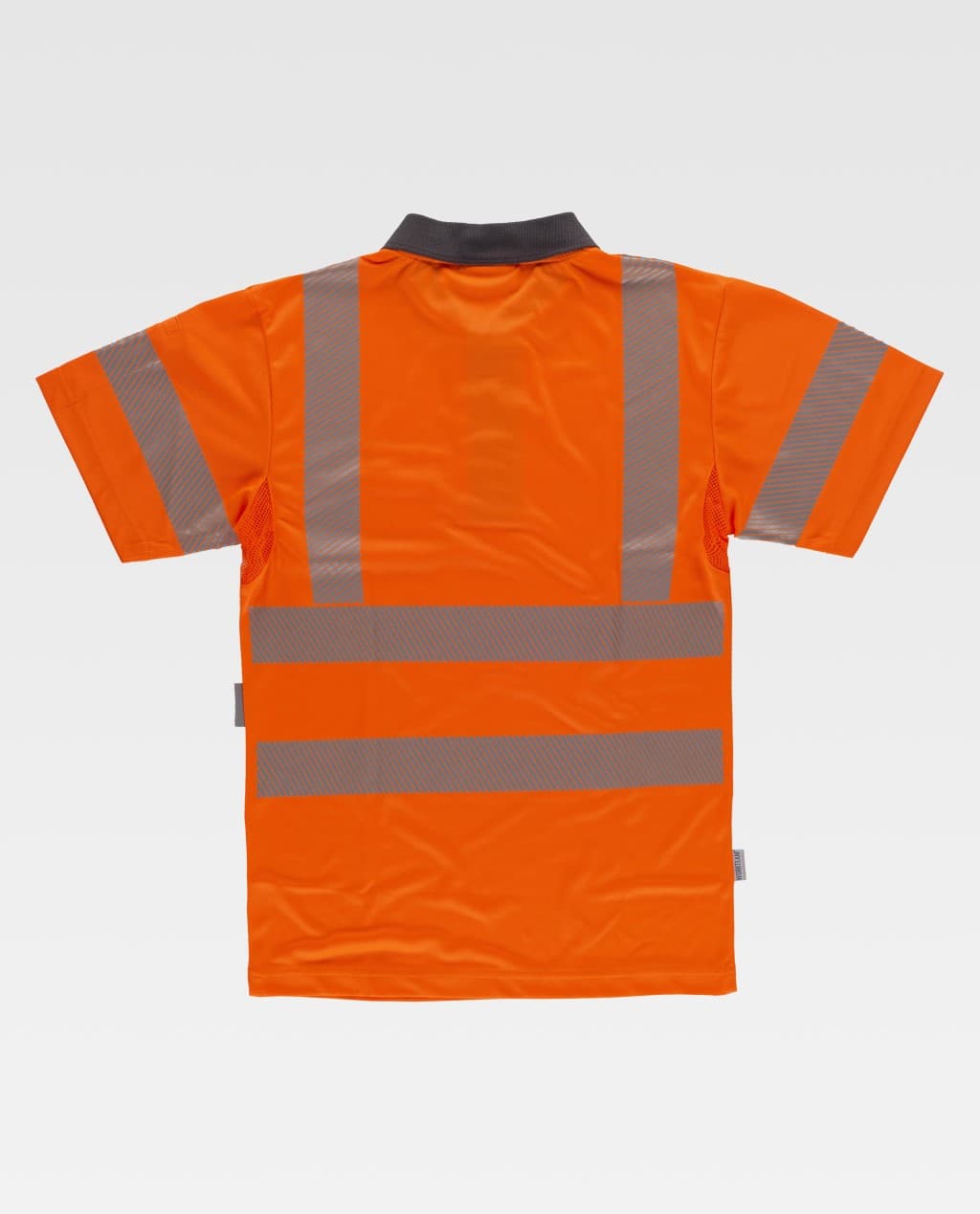 Polo de alta visibilidad de manga corta en micropiqué. Reflectantes segmentadas para regular la transpiración. Cuello clásico con tapeta de tres botones y cubrecosturas interior. Un bolso de pecho de ojal y otro para boligrafo en manga. Una cinta reflectante segmentada termoadhesiva en hombros y en mangas y dos en pecho y espalda. Cuello en punto canalé combinado.