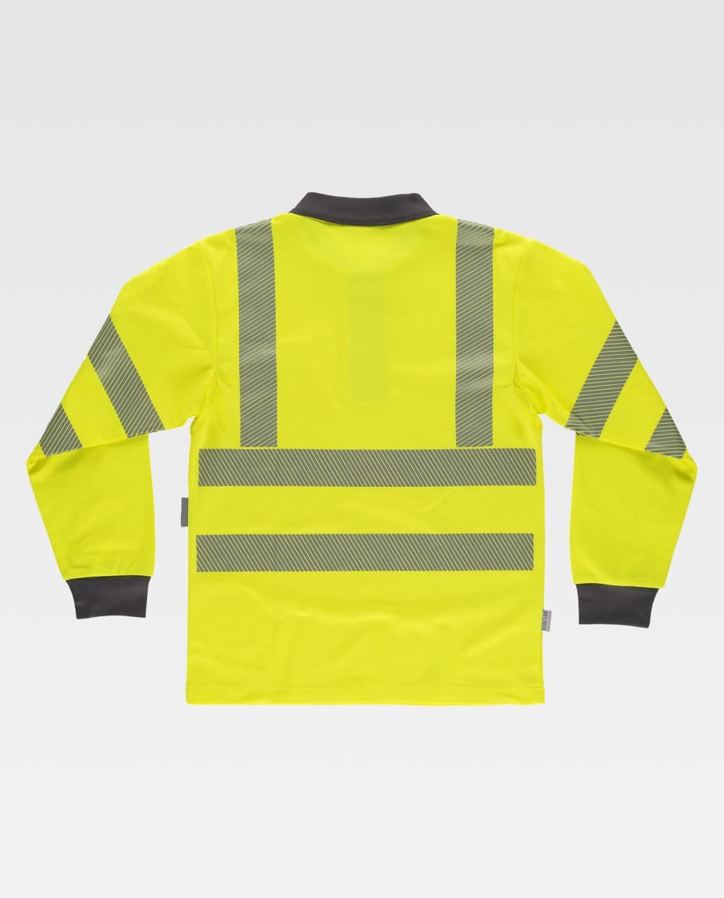 Polo de alta visibilidad de manga larga en micropiqué. Reflectantes segmentadas para regular la transpiración. Cuello clásico con tapeta de tres botones y cubrecosturas interior. Un bolso de pecho de ojal y otro para boligrafo en manga. Una cinta reflectante segmentada termoadhesiva en hombros y dos en mangas, pecho y espalda. Puño elástico combinado. Cuello en punto canalé combinado. Interior perchado.