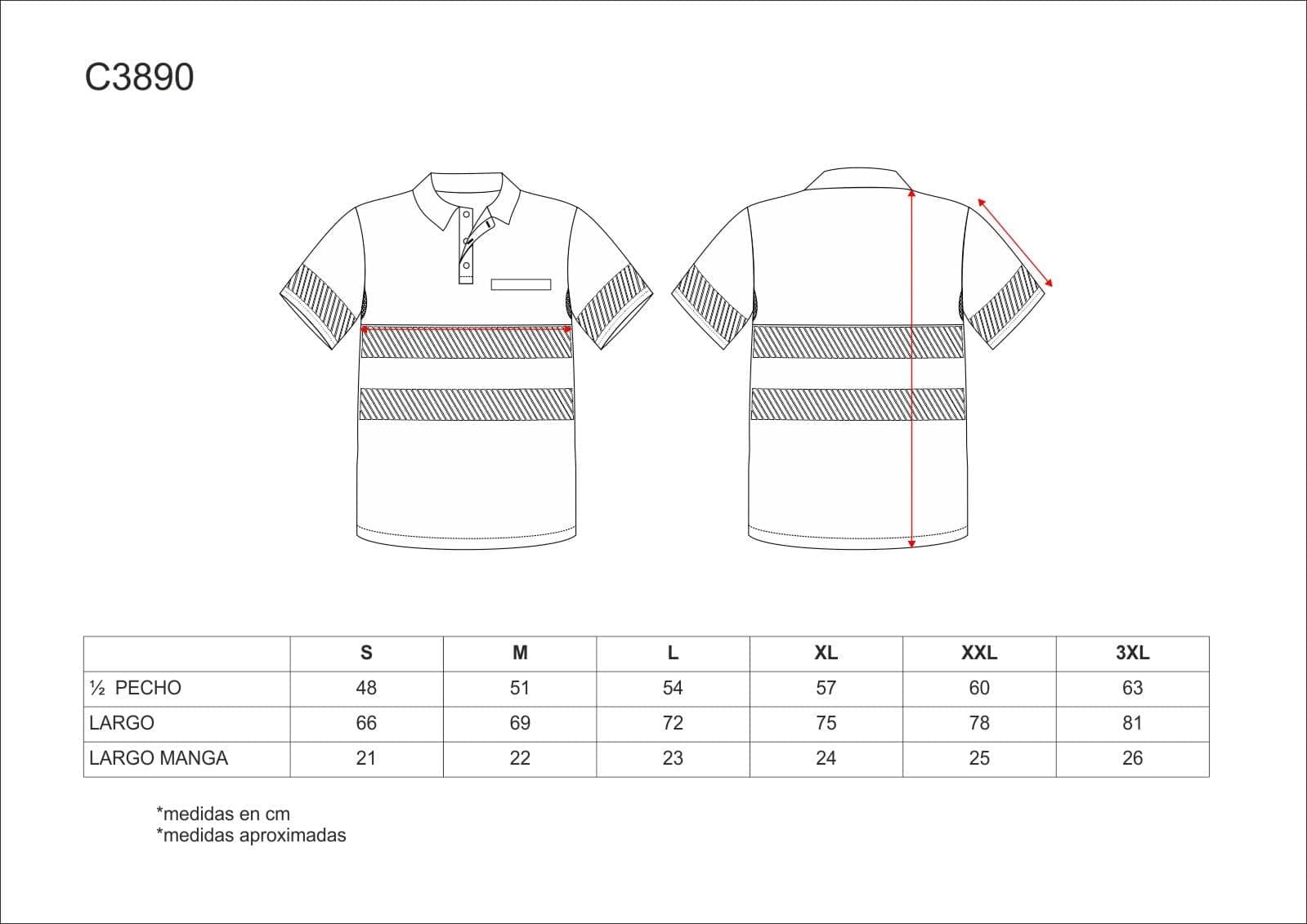 POLO C3890 · MC · MICROPIQUE · REJILLA BAJO BRAZO · BOLSILLO · AV · CE II CAT