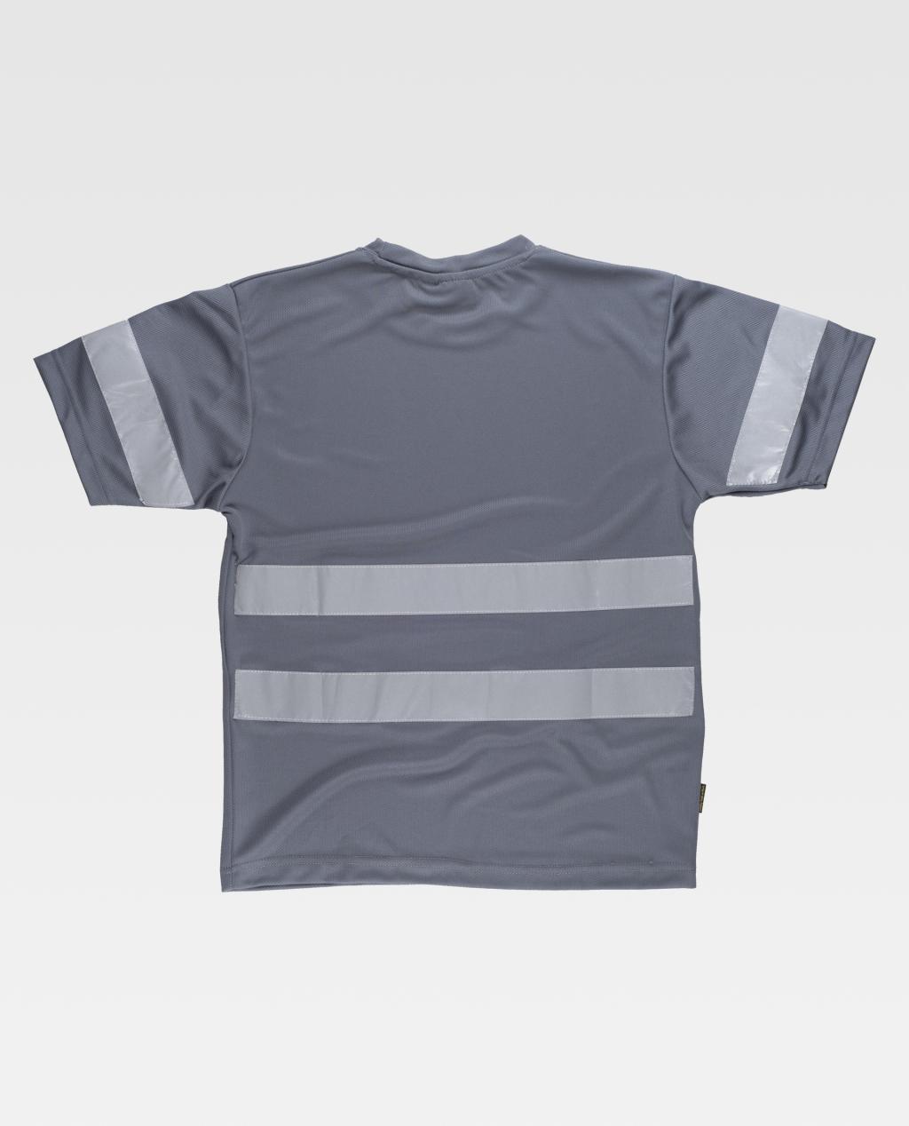 Camiseta de manga corta en poliéster ojo de perdiz con cintas reflectantes. Cuello redondo con cubrecosturas interior. Una cinta reflectante en mangas y dos en pecho y espalda. Tejido fresco y ligero de alta permeabilidad al aire. Transpirable, de fácil secado y resistente al encogimiento.