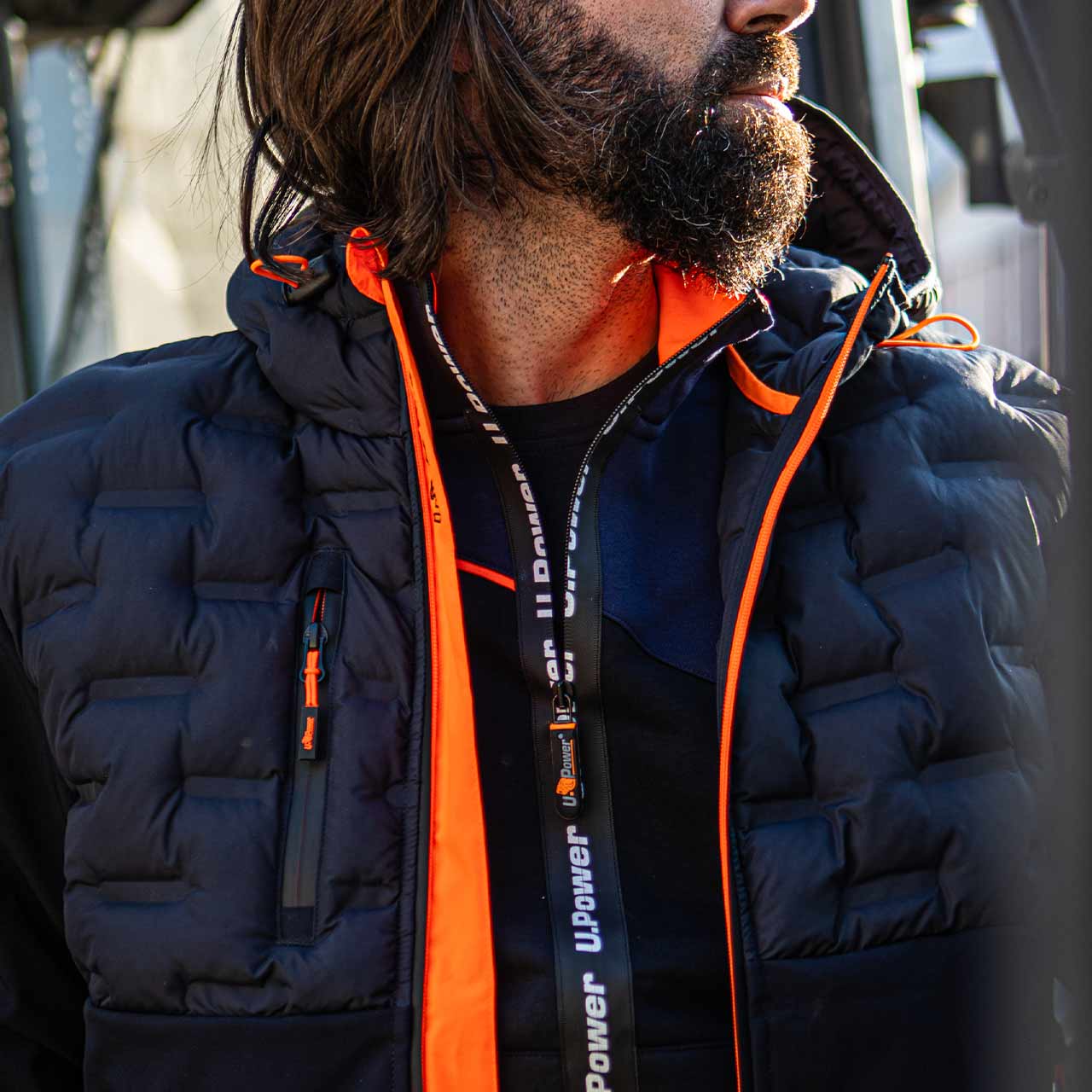 Chaqueta híbrida repelente al agua, transpirable y antiviento, extremadamente versátil e ideal para quienes realizan trabajos dinámicos en ambientes fríos o medio-templados, sin por ello sacrificar la libertad de movimiento. Cierre central con cremallera impermeable. Capucha fija y ajustable, puños elásticos. Chaqueta de plumón acolchado con tecnología sin costuras. Forro interior de nailon y microfibra con impresión serigráfica. Dos amplios bolsillos delanteros con cierre de cremallera fluorescente y un bolsillo en el pecho con cierre de cremallera impermeable. Dos amplios bolsillos interiores. Dobladillo contorneado y ribete fluorescente en la espalda. Logotipo U-Power tono sobre tono.