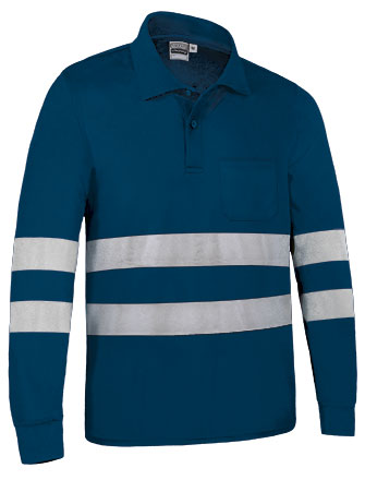 Polo técnico de manga larga y visibilidad realzada confeccionado en tejido transpirable y térmico, perchado en interior. Cuello de tricotosa y puños de canalé. Cierre con tapeta central y dos botones. Incluye dos bandas de material retroreflectante termofijadas en el contorno de la prenda, por debajo del pecho, separadas entre sí. Indicado para señalizar visualmente al usuario cuando es iluminado por una fuente de luz, como los faros de un vehículo.