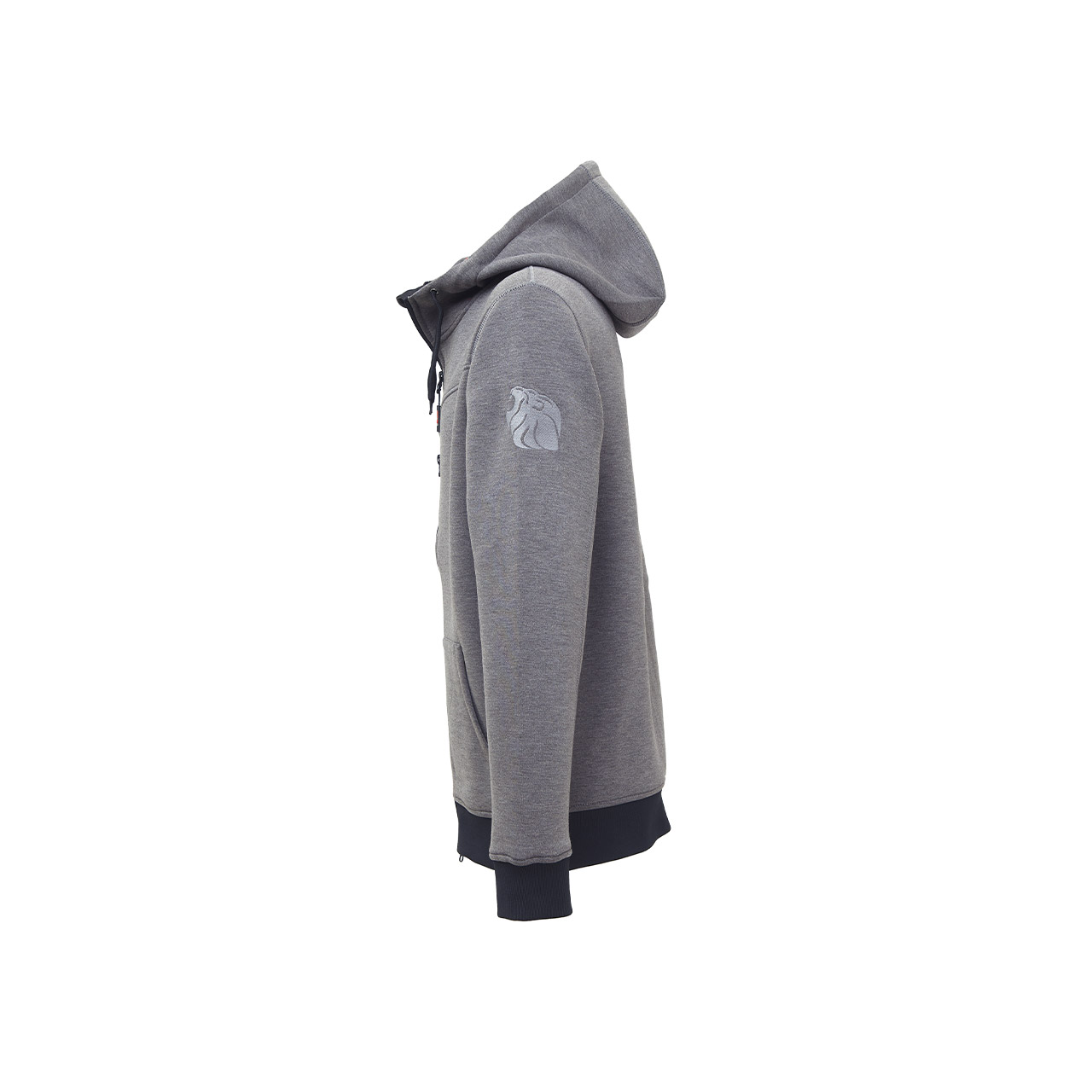 Sudadera de trabajo con cremallera completaen tejido jersey scuba elástico. Capucha ja con borde re ectante. Dos bolsillos delanteros. Un bolsillo multimedia en el lado derecho del pecho con salida del auricular con tecnología FREE SOUND. Cremallera central con doble deslizador. Los puños y cintura de costura elástica resistentes. Los ori cios de ventilación situados en las axilas garantizan un mejor confort. Logo U-Power con su „cabeza de león“ bordado tono sobre tono en el brazo izquierdo. Sudadera para Agricultores, Transportistas, Carpinteros, Electricistas, Fontaneros, Empresas de limpieza, Instaladores, Almacenistas, Mécanicos, Albañiles, Pescadores, Personal del aeropuertos