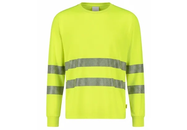 Camiseta de manga larga de alta visibilidad monocolor en fluor. Confeccionado con tejido técnico nido de abeja que facilita la transpiración y tiene mejor respuesta en enganchones. La prenda dispone de tejido de malla en las axilas lo cuál ayuda a la evaporación rápida del sudor. El cuello está confeccionado en tejido de canalé en el mismo color de contraste que el resto de la prenda. Bandas reflectantes segmentadas de color gris/plata que rodean el torso. Lavado a temperatura máxima 40º - Se puede planchar maximo 150°C -No usar lejía - No permite limpieza en seco - No utilizar secadora - Max 25X