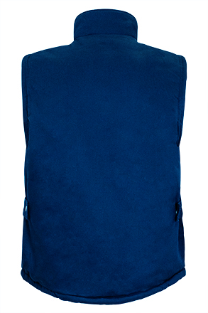 Chaleco multibolsillos confeccionado en tejido exterior de sarga resistente 100% algodón con relleno acolchado y forro interior. Cuello alto y cremallera frontal entera. Incluye una tapeta sobre la cremallera con cierres de presión. Seis bolsillos en la cara exterior que incluyen dos departamentos para bolígrafo. Bolsillo interior en pecho izquierdo y reguladores en los laterales con cierre a presión. Cortavientos con elástico en las mangas y espalda más larga con faldón inferior. Espalda apta para el marcaje, facilitado gracias a una gran abertura interior con cremallera.