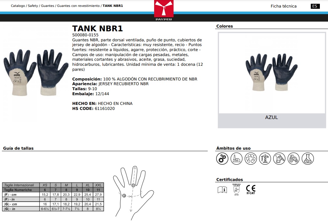GUANTES TANK NBR1 · DORSAL VENTILADO | Pack 12 pares