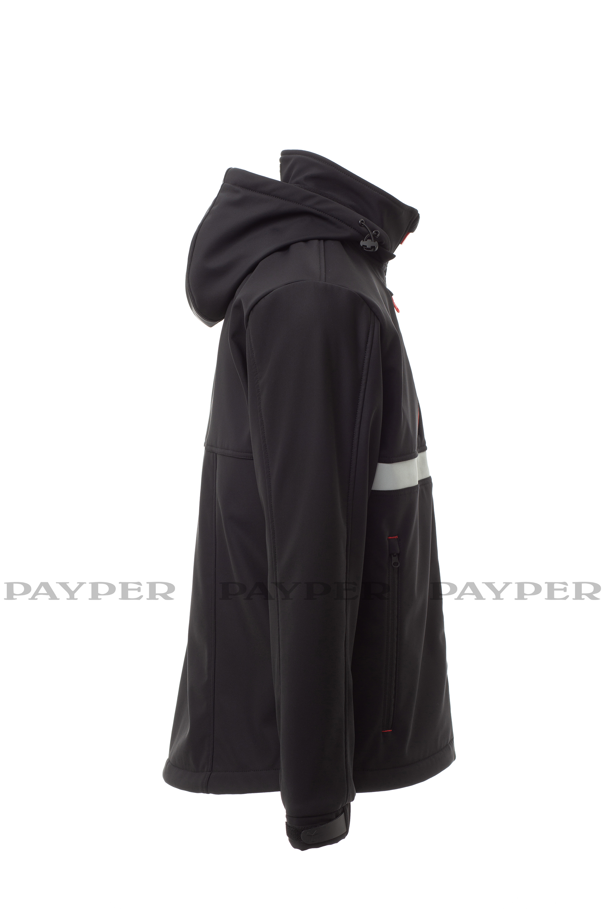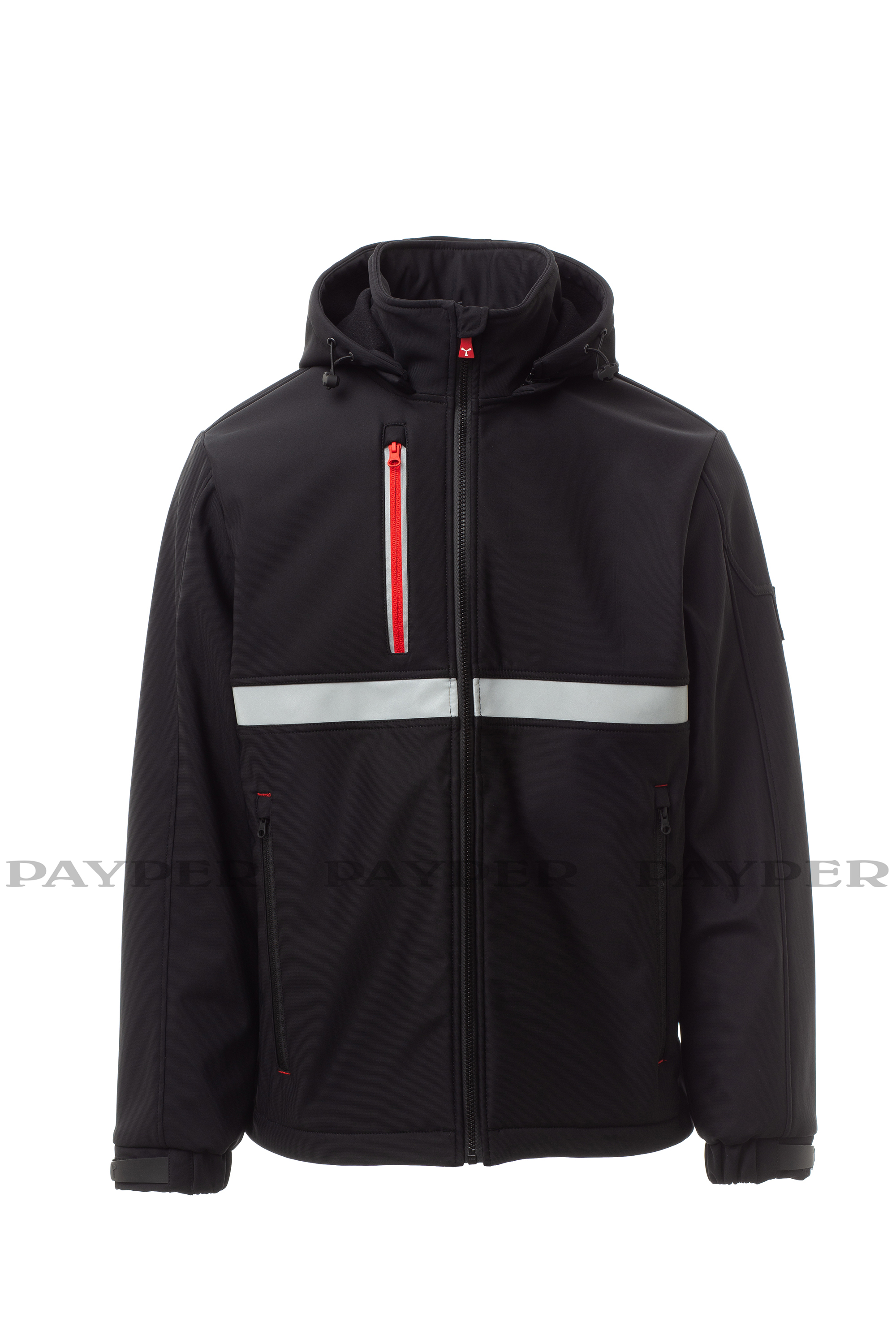 Soft-shell de hombre, cierre con cremallera SBS con cursor de metal con sistema de bloqueo semiautomático y tirador personalizado. Capucha ajustable con cordón y desmontable. Banda retrorreflectante frontal en el tórax. Puños elásticos ajustables con velcro. Dos bolsillos laterales con cremallera y un bolsillo en el pecho cerrado con cremallera con detalle retrorreflectante. Elementos «life-saving» en la espalda, con logotipo interior retrorreflectante, cerrado con cremallera. Un bolsillo interior para tableta cerrado con velcro. Forro interior transpirable en la espalda. Bajo ajustable con topes personalizados.