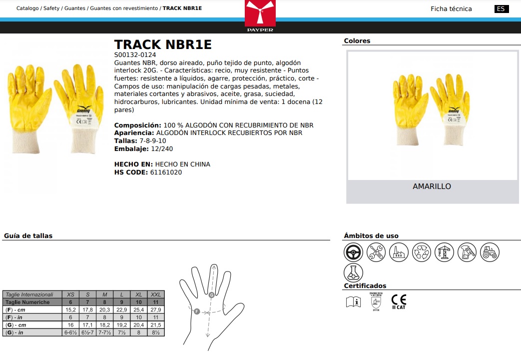 GUANTES TRACK NBR1E · DORSO VENTILADO · GALGA 20 | Pack 12 pares