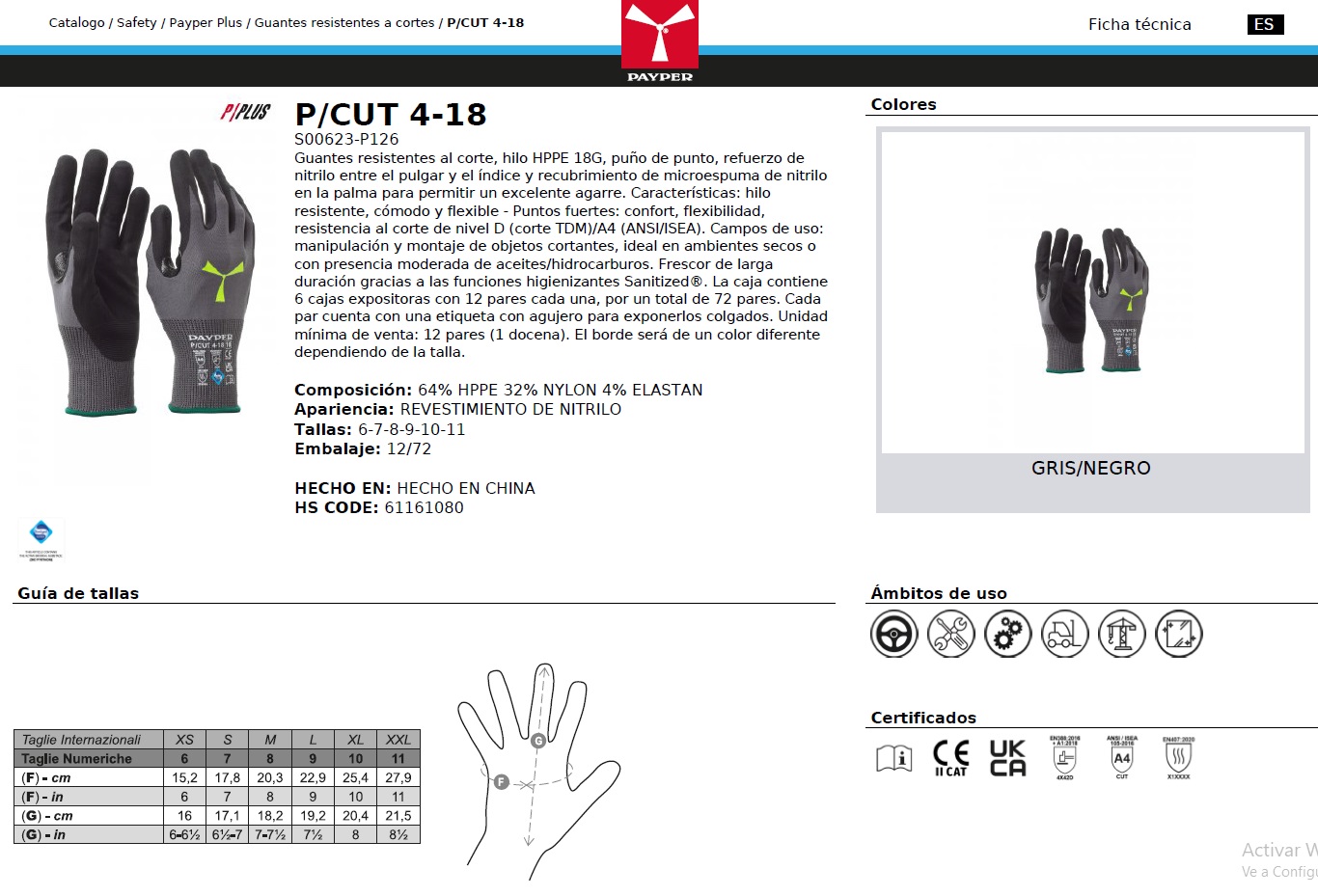 GUANTES P/CUT 4-18 · TOUCH · ANTI CORTE GRADO D · GALGA 18 | Pack 12 pares - Anticorte - PayPer - Unisex
