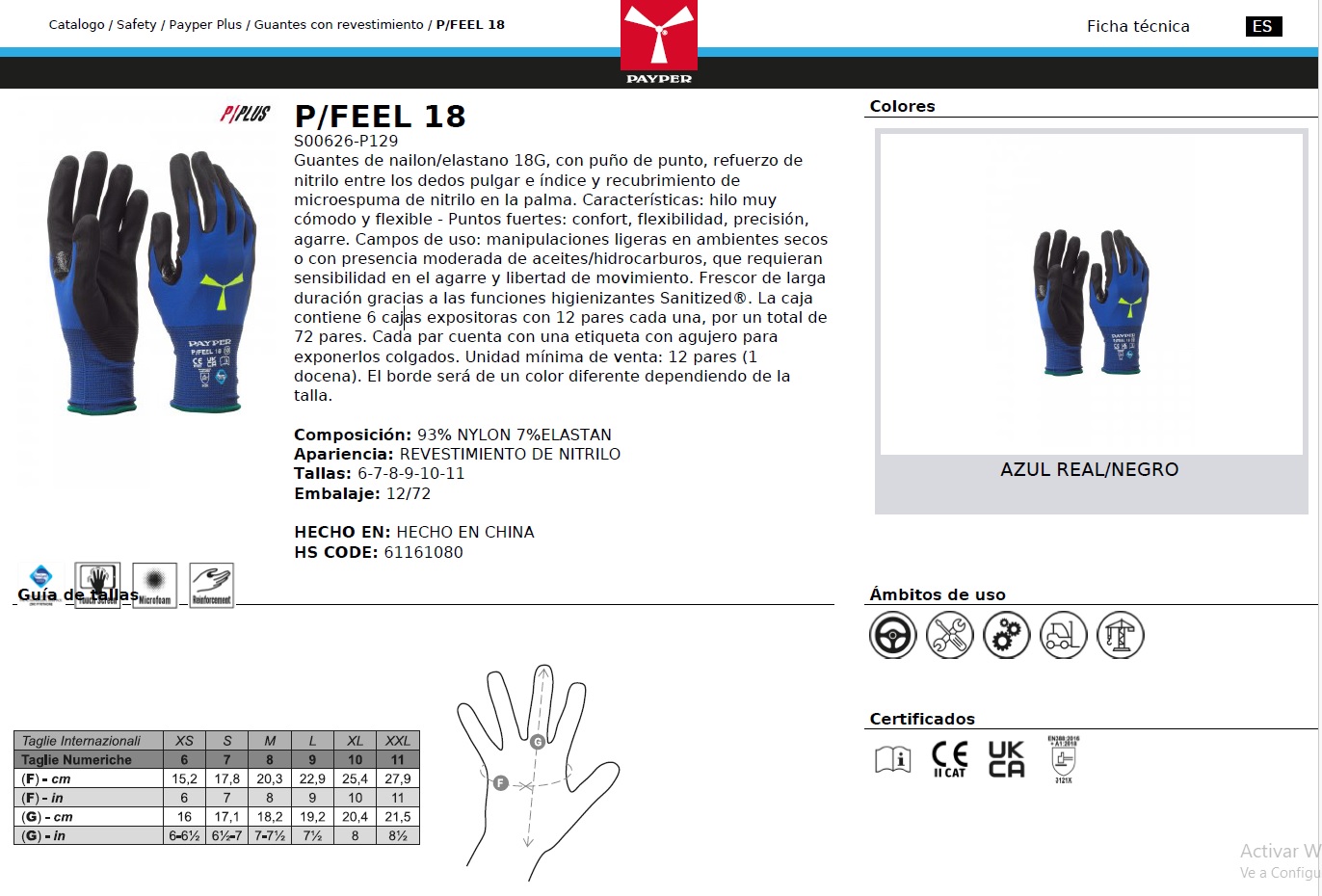 Guantes de nailon/elastano 18G, con puño de punto, refuerzo de nitrilo entre los dedos pulgar e índice y recubrimiento de microespuma de nitrilo en la palma. Características: hilo muy cómodo y flexible - Puntos fuertes: confort, flexibilidad, precisión, agarre. Campos de uso: manipulaciones ligeras en ambientes secos o con presencia moderada de aceites/hidrocarburos, que requieran sensibilidad en el agarre y libertad de movimiento. Frescor de larga duración gracias a las funciones higienizantes Sanitized®.