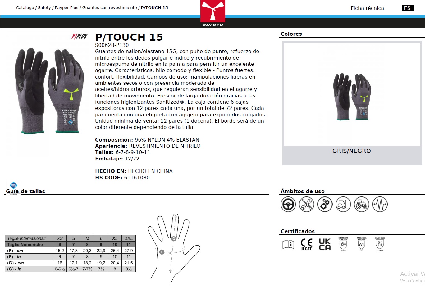 GUANTES P/TOUCH 15 · TOUCH · GALGA 15 | Pack 12 pares