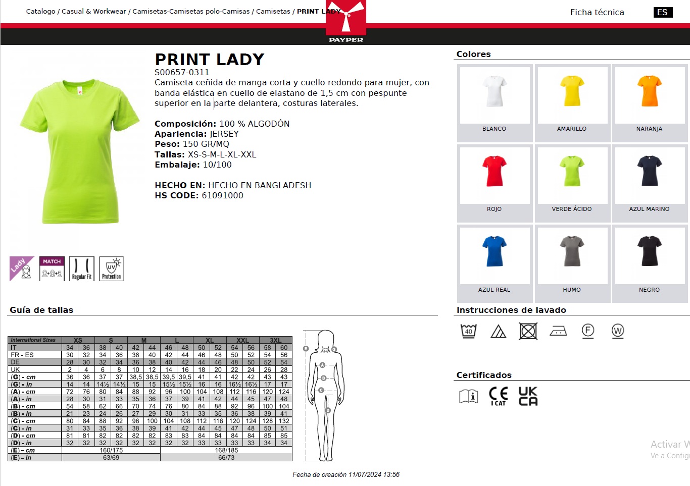 CAMISETA PRINT LADY · MC · 100% ALGODON · PROTECCION SOLAR >50 · CE I CAT
