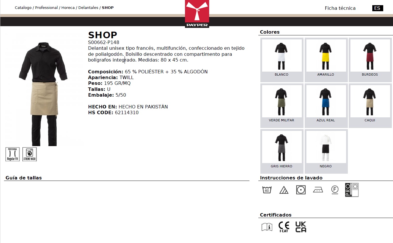 DELANTAL FRANCES SHOP · BOLSILLO · 80x45cm · CE I CAT | Pack 5 unidades - Delantales - PayPer - Unisex
