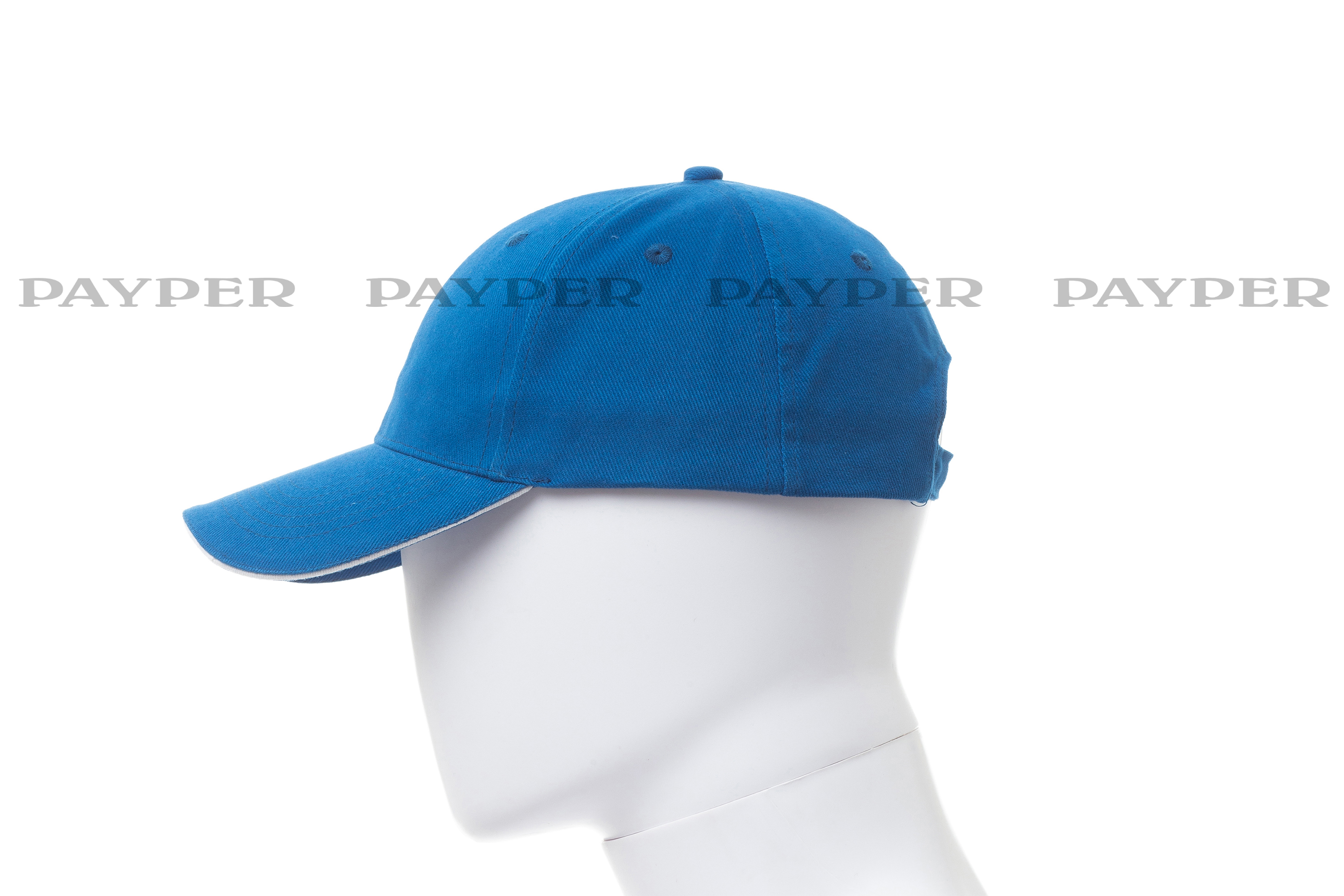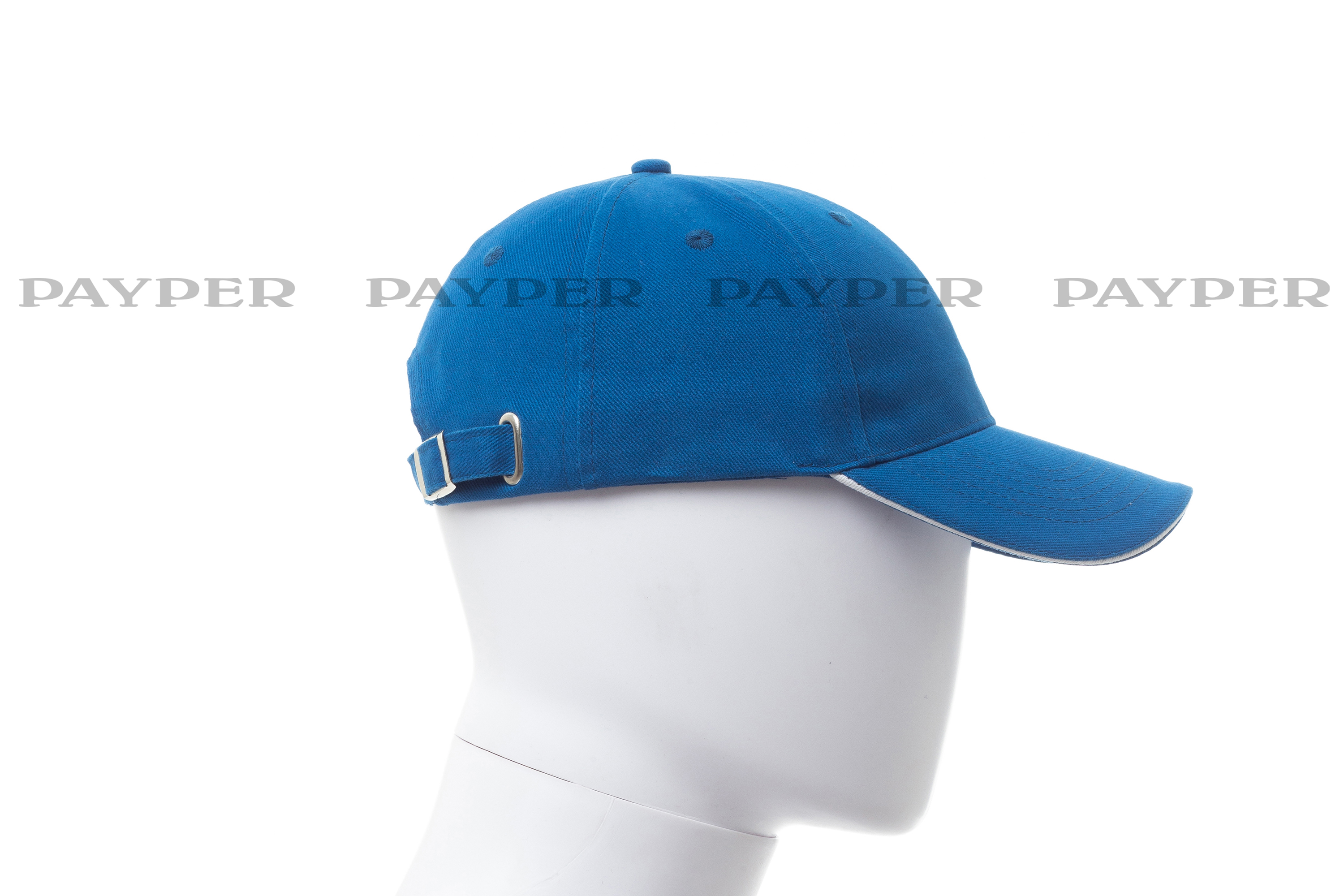 Gorra de niño de 6 paneles, en twill de algodón cepillado, con visera precurvada con sándwich en contraste, ojales bordados y cierre ajustable con hebilla y botón automático.