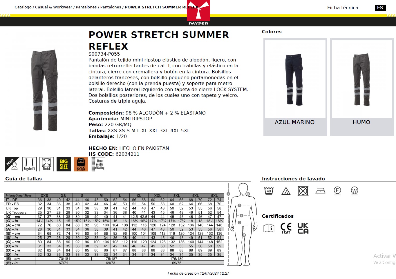 PANTALON POWER STRETCH SUMMER REFLEX · MULTIBOLSILLOS · ELASTICO/STRETCH · TRIPLE COSTURA · CE I CAT · VR