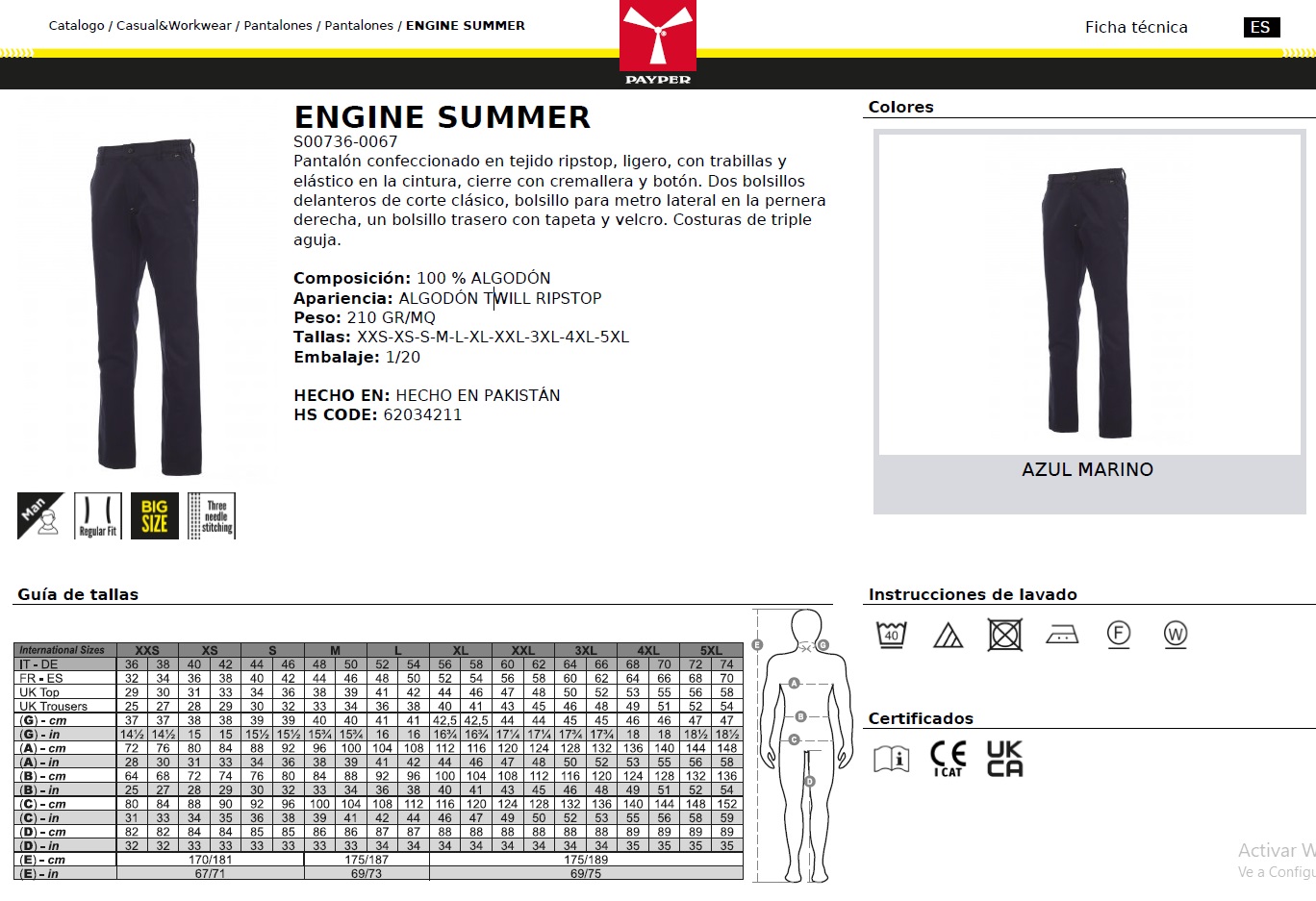 PANTALON ENGINE SUMMER · 100% ALGODON · TRIPLE COSTURA · CE I CAT