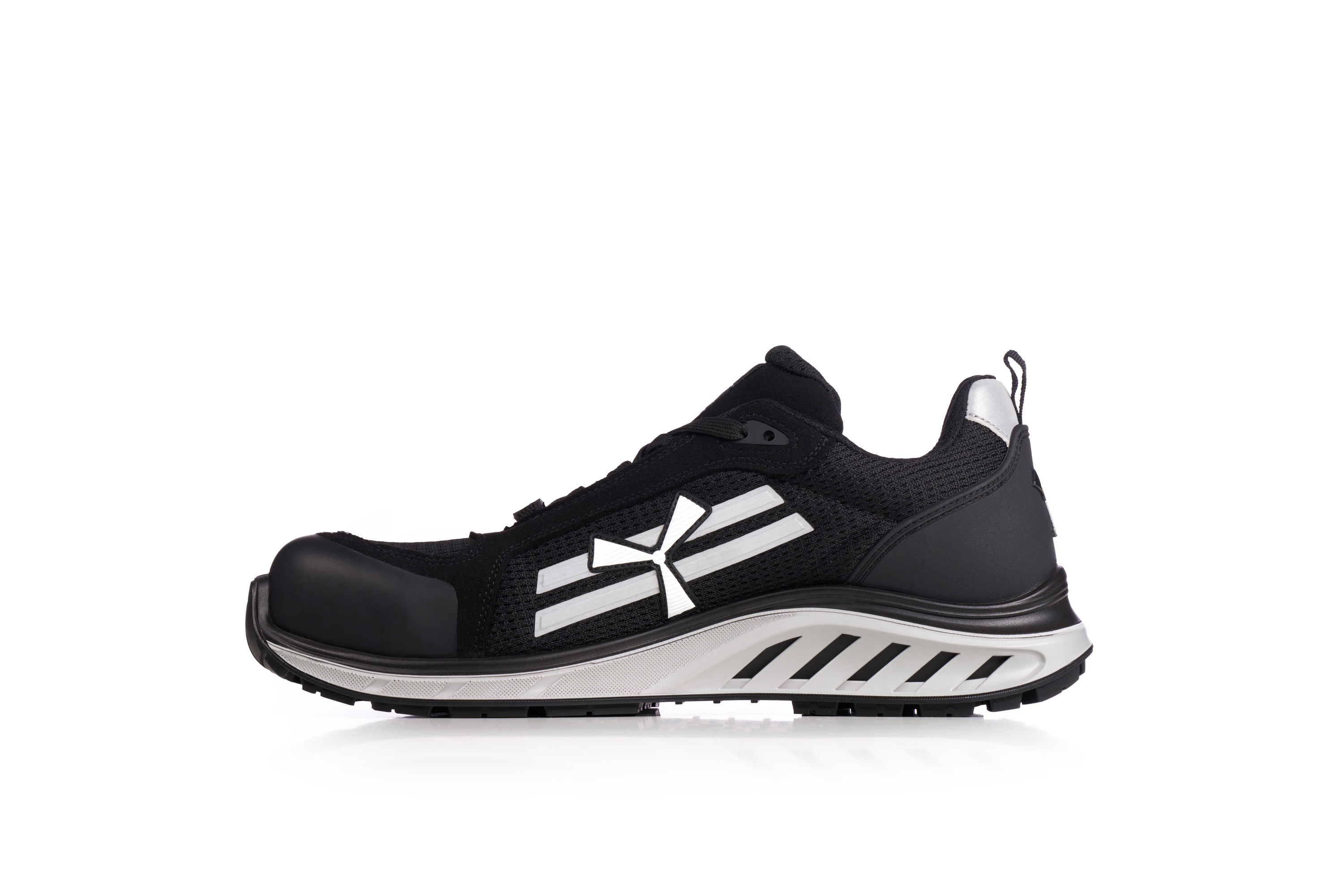 Extraordinarios. Dinámicos. Innovadores. 10 ranuras, cinco por lado. Una característica estética, pero también funcional, que revoluciona el concepto de calzado de seguridad. Tres capas de confort unidas mediante la innovadora técnica de inyección directa, cada una con propiedades específicas. La primera entresuela está diseñada para garantizar una amortiguación equilibrada y una distribución uniforme de la energía, mientras que la segunda garantiza estabilidad y la máxima sujeción. Ambas terminan en una suela exterior sumamente resistente al desgaste y a la hidrólisis.