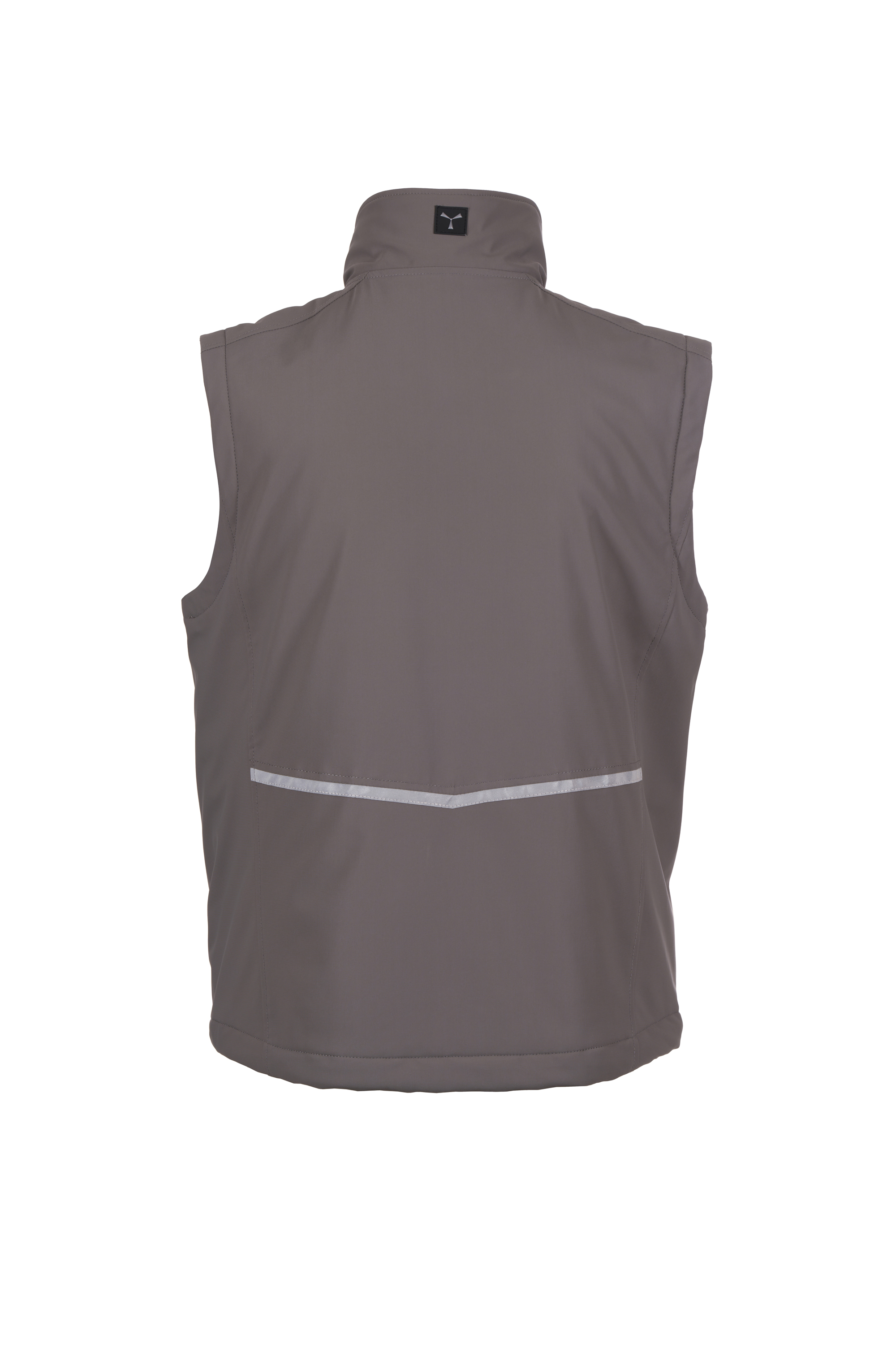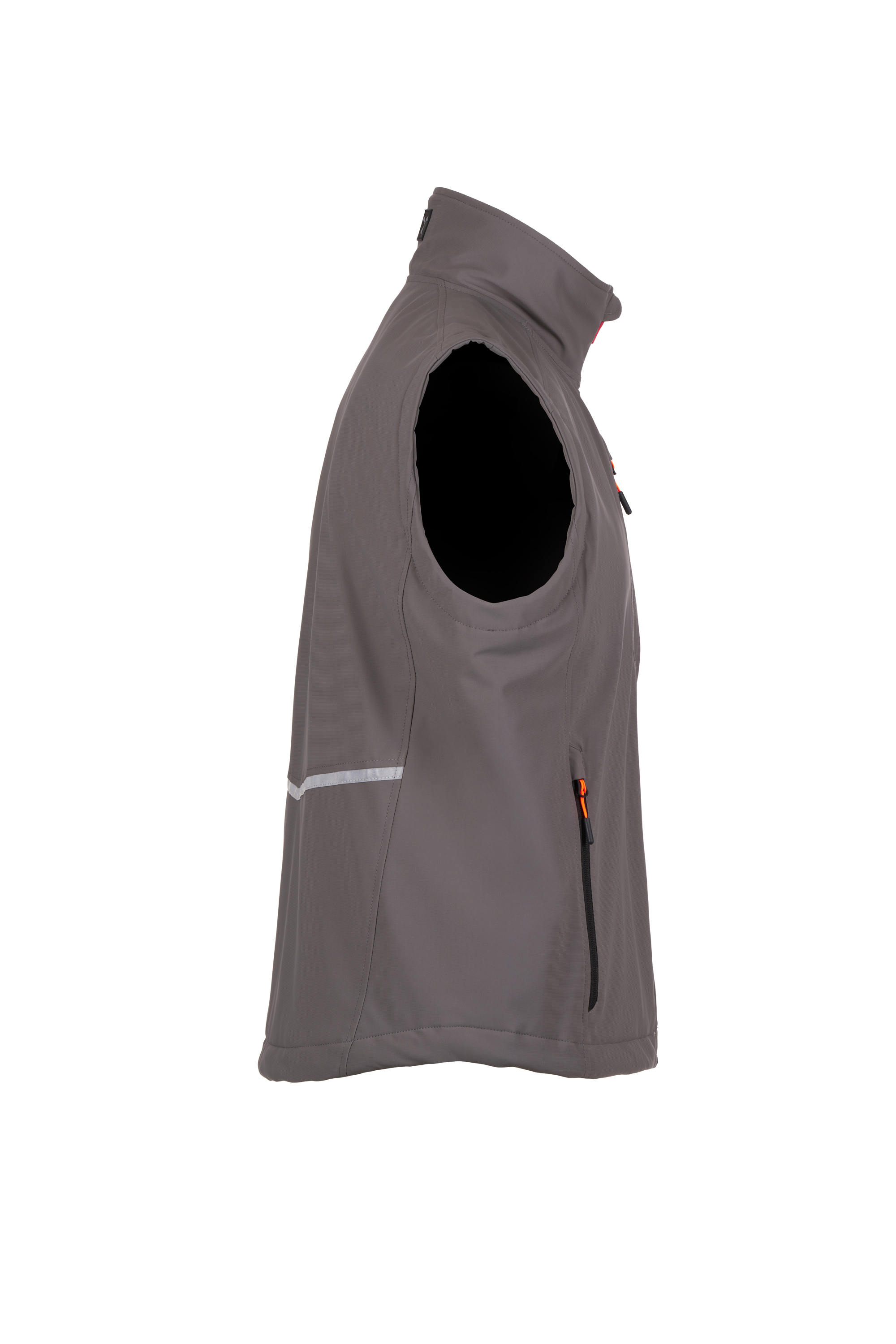 Chaleco soft-shell con acolchado ligero de 100 g/m², de hombre, cierre con cremallera SBS con cursor de metal con sistema de bloqueo semiautomático y tirador personalizado. Banda retrorreflectante en la parte posterior de la cintura. Dos bolsillos laterales con cremallera, un bolsillo en el pecho con cremallera recubierta. Tiradores fluorescentes. Un bolsillo de ojal interior, cerrado con velcro. Bajo ajustable con topes personalizados.