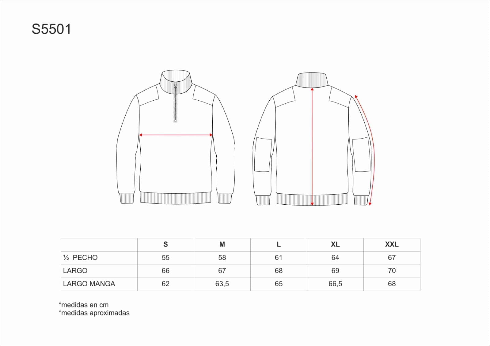 JERSEY S5501 · PUNTO GRUESO · MEDIA CREMALLERA · REFUERZOS HOMBROS Y CODOS