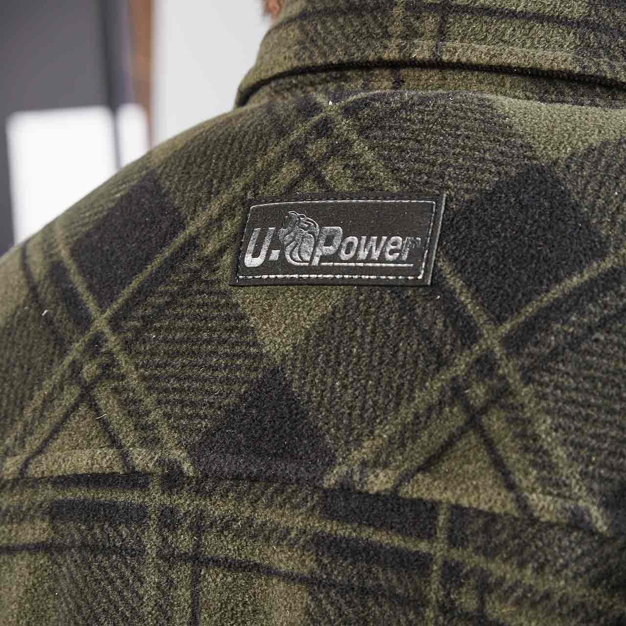 Camisa a cuadros con patch logo U-Power en la espalda atrás del cuello.