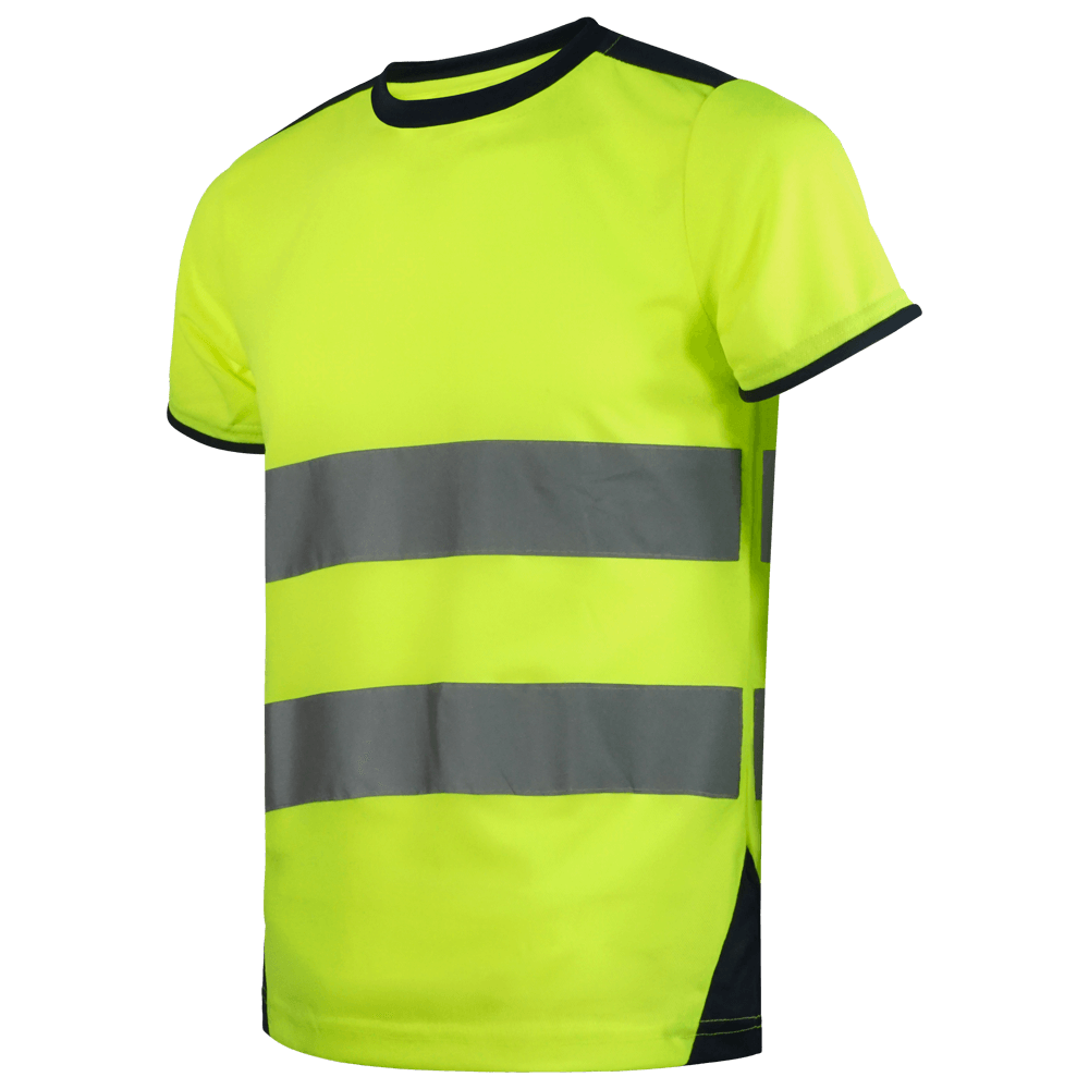 Camiseta en poliéster micropiqué combinado de alta visibilidad.