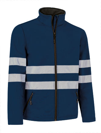 Chaqueta de visibilidad realzada. Confeccionada en tejido softshell cortavientos de tres capas que aporta confort a los usuarios: capa exterior de tejido hidrofugado, capa interior de tejido polar anti-peeling y capa intermedia cortavientos de PU transpirable. Cierre frontal de cremallera entera con cuello alto y protegebarbilla. Cintura y puños rectos con doble pespunte que aumenta su resistencia. Dos bolsillos delanteros oblicuos con cierre de cremallera para tener todo accesible. Dos bandas retrorreflectantes cosidas en el contorno de la cintura y en las mangas para aumentar la visibilidad de los trabajadores en condiciones de oscuridad.