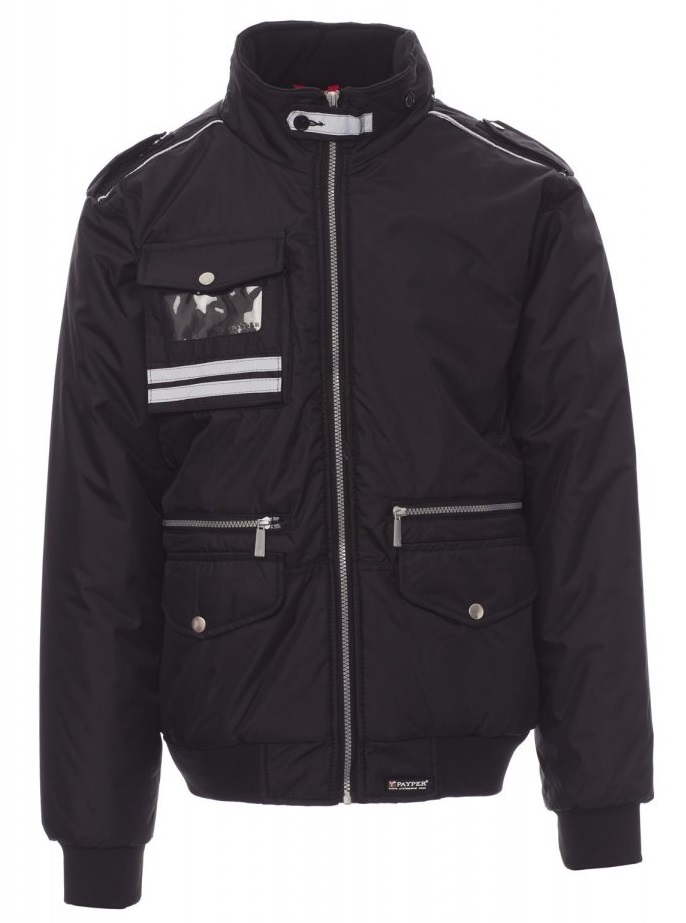 Chaqueta para hombre, de estilo informal y efecto estilizado, cremallera de plástico con cursor de metal, capucha plegable en el cuello, cintura y puños de tejido RIB, presillas en hombro y cuello, dos bolsillos LOCK SYSTEM, dos bolsillos con cremallera, un bolsillo con soporte para tarjeta de identificación reversible, banda reflectante en los hombros y dos bandas reflectantes en la zona del pecho y espalda. Interior: acolchado, con forro plateado de alta densidad, espalda de micro forro polar, forro polar en la parte interior del cuello, un bolsillo.