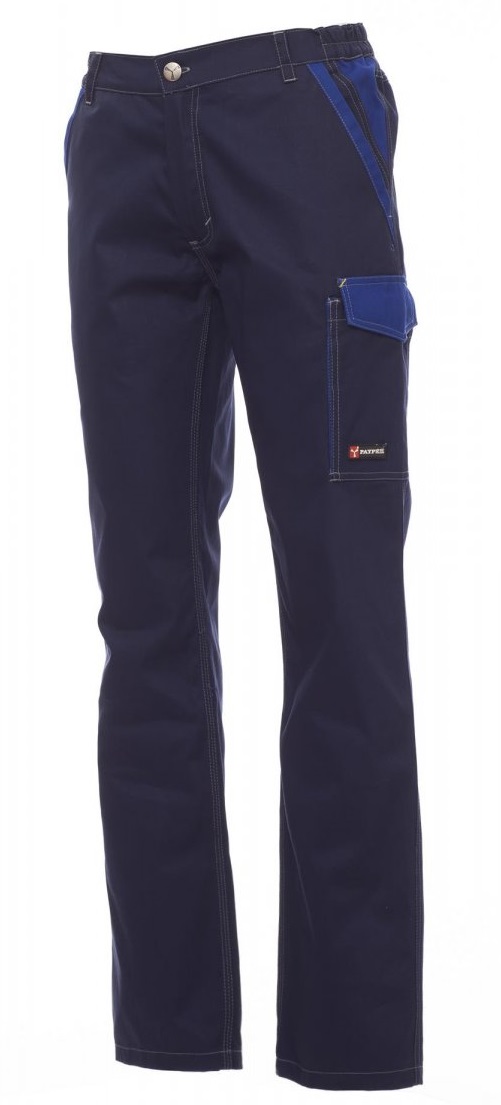Pantalón unisex para todo el año con lateral elástico y trabillas en la cintura. Cierre con cremallera y botón metálico, dos bolsillos delanteros clásicos y un bolsillo con cremallera, un bolsillo lateral LOCK SYSTEM, un bolsillo para cinta métrica doble en el lateral izquierdo, dos bolsillos traseros, uno abierto y otro con solapa y velcro. Inserciones y pespuntes de contraste, bandas reflectantes en el bolsillo trasero, triple costura en la parte interior de la pernera.