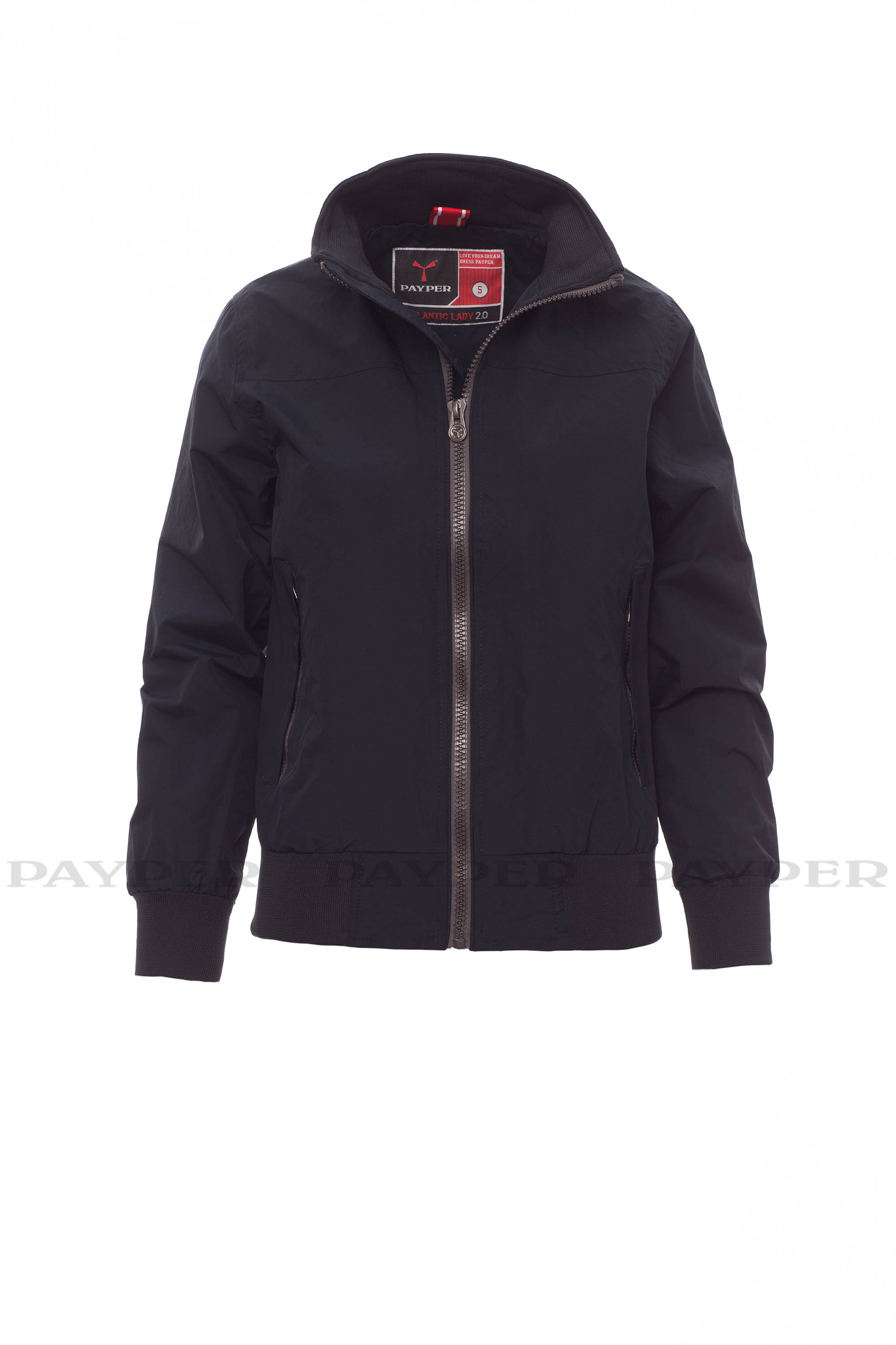 Chaqueta ergonómica para mujer, cremallera de 8 mm de plástico con cursor de metal, con puños y cintura en tejido RIB elástico, dos bolsillos exteriores con cremallera de plástico. Interior no acolchado, reforzado, un bolsillo para teléfono móvil con cremallera y paso para auriculares, cremallera en delantero y espalda para facilitar la impresión y el bordado.