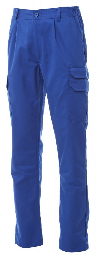 Pantalón multitarea con trabillas y elástico en la cintura, cierre con cremallera y botón. Costuras de la entrepierna e interior de la pierna con triple aguja, dos bolsillos delanteros de corte clásico, bolsillo en el lado izquierdo con tapeta y cremallera de seguridad con tapeta de cubierta, bolsillo en el lado derecho con tapeta dividida en dos para llevar la cinta métrica, dos bolsillos posteriores, uno con tapeta de cierre.
