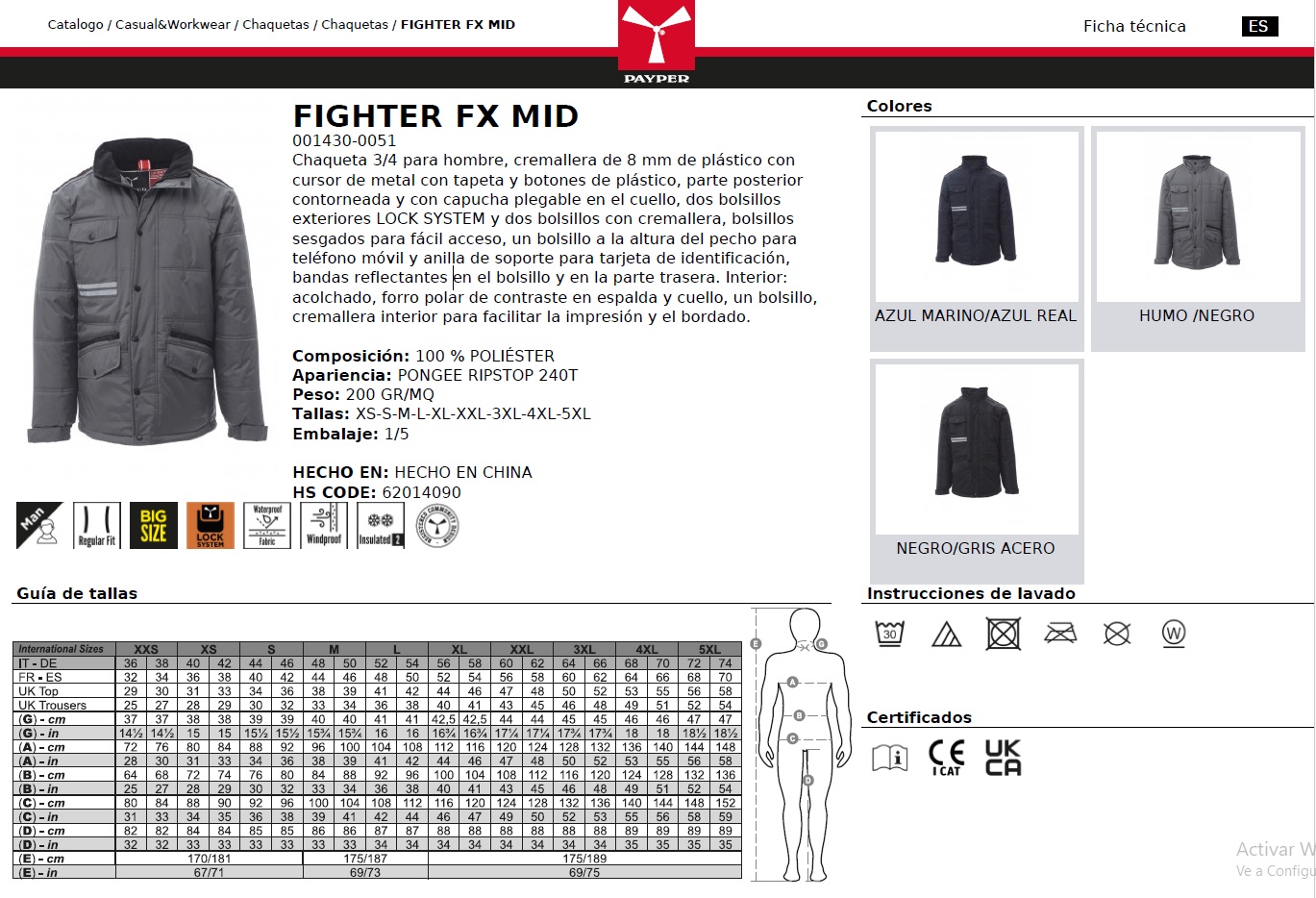 PARKA FIGHTER FX MID · WATERPROOF · CORTAVIENTOS · INSULATED 2 · CE I CAT