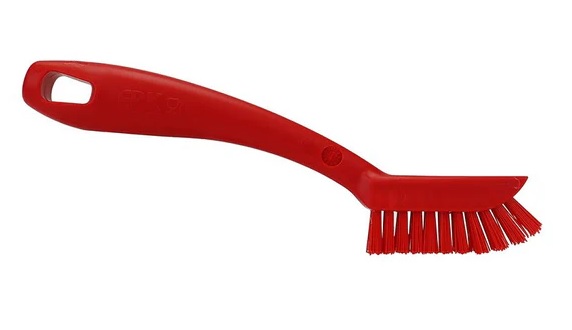 Cepillo para detalles dureza alta para uso alimentario fabricado en poliéster PBT coloreado, un material derivado del plástico que cuenta con una alta resistencia y durabilidad. Con agarre ergonómico, el mango es cómodo incluso para su uso con guantes. Resistente contra la suciedad exigente. Cepillo ideal para fregar residuos difíciles en áreas pequeñas.