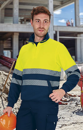 Confeccionada en tejido poliéster con tacto algodón y perchado interior para mayor retención térmica y confort, incluye dos cintas retro-reflectantes segmentadas termo-fijadas en torso, espalda y mangas que favorecen la elasticidad y aumentan la visibilidad de los usuarios.
