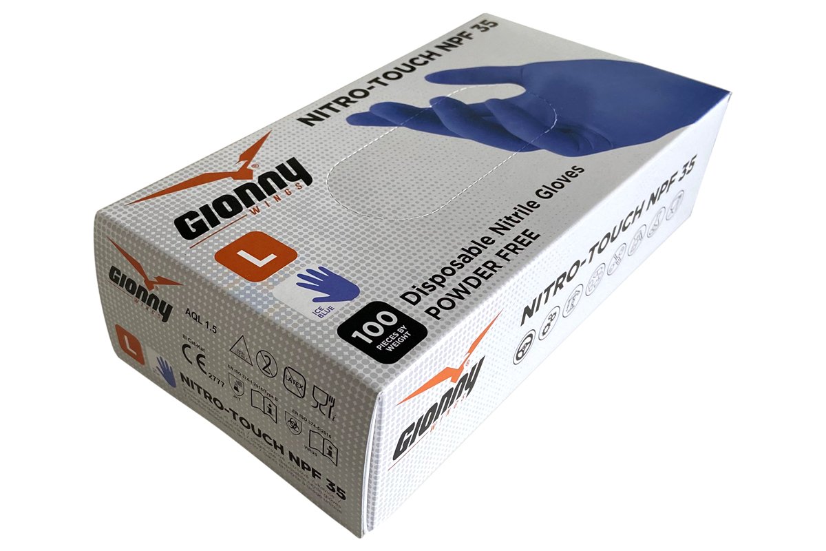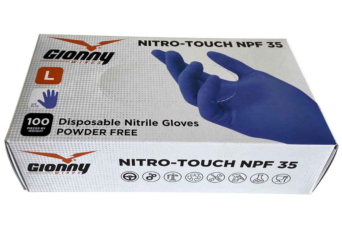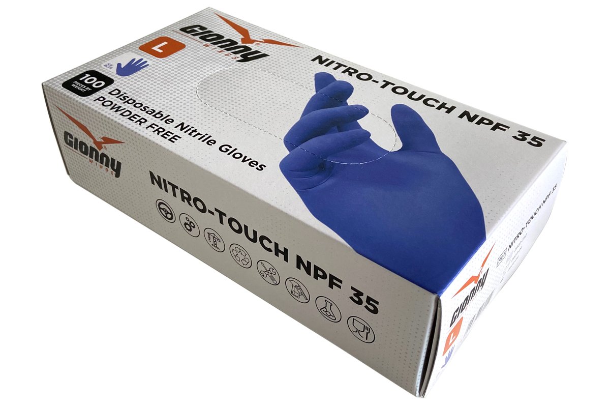 GUANTE NITRO-TOUCH NPF 35 DESECHABLE DE NITRILO · SIN POLVO | Pack 10 cajas de 100 unidades (Total 1.000 unidades) - Desechables - Gionny - N/A