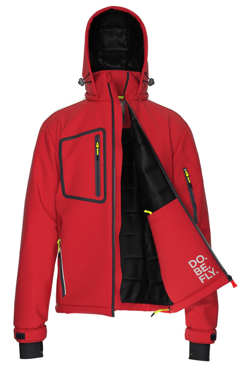 Soft-shell acolchado de hombre, cierre con cremallera SBS con cursor de metal con sistema de bloqueo semiautomático y tirador personalizado. Capucha ajustable con cordón y desmontable. Cuello interno con detalles laterales de polar. Bandas retrorreflectantes en hombros, bajo de la espalda y parte posterior de la capucha. Puños elásticos ajustables con velcro y manguito interior. Bolsillo termosellado en el pecho, cerrado con cremallera recubierta. Dos bolsillos laterales, cerrados con cremallera con detalle retrorreflectante. Bolsillo en la manga izquierda con alojamiento para bolígrafos integrado, cerrado con cremallera. Tiradores fluorescentes. Dos bolsillos interiores, uno contorneado con cremallera a la altura del pecho derecho y otro para tableta cerrado con velcro. Bajo ajustable con topes personalizados.