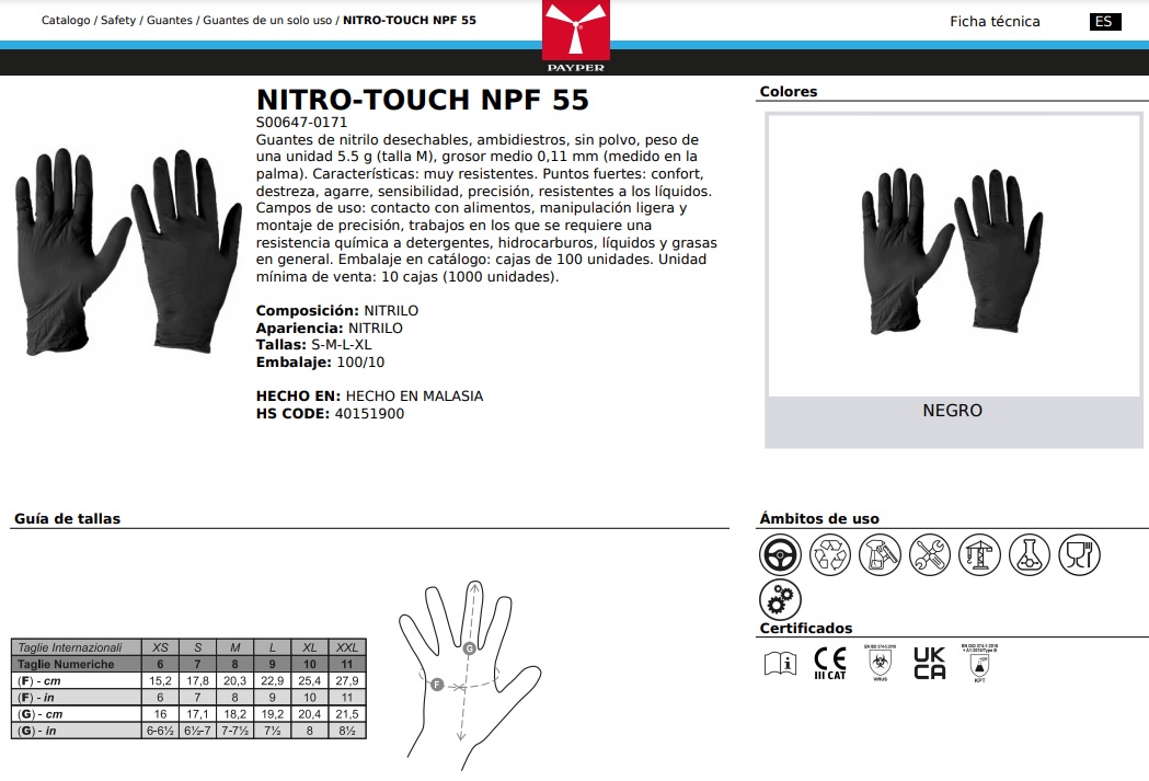 GUANTES DESECHABLES NITRO-TOUCH NPF 55 · NITRILO SIN POLVO · GROSOR 0,11mm | Pack de 10 Cajas de 100 unidades (Total 1.000 unidades)