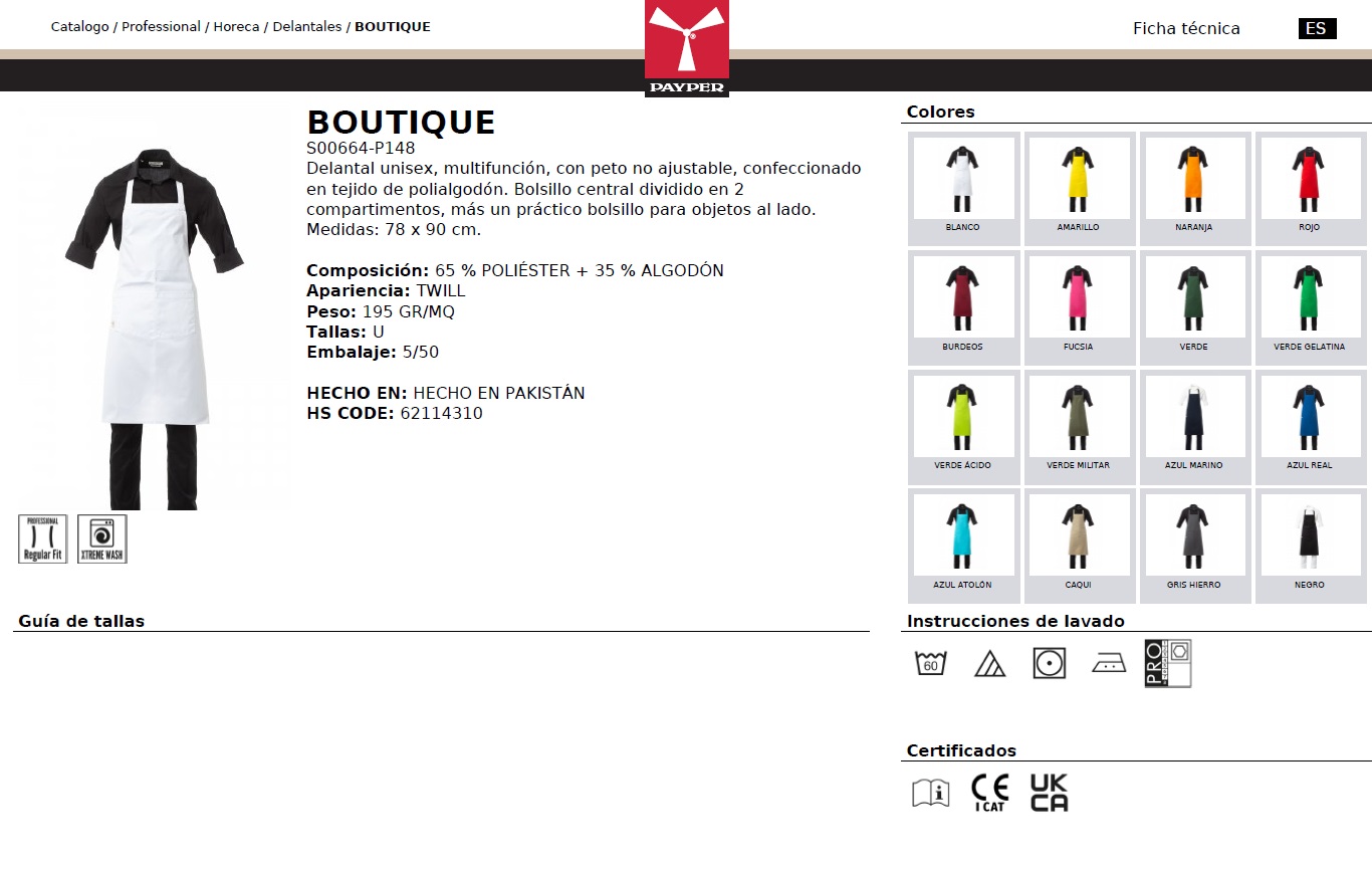 DELANTAL BOUTIQUE · BOLSILLO · 78x90cm · CE I CAT | Pack 5 unidades
