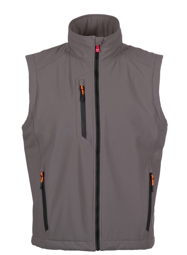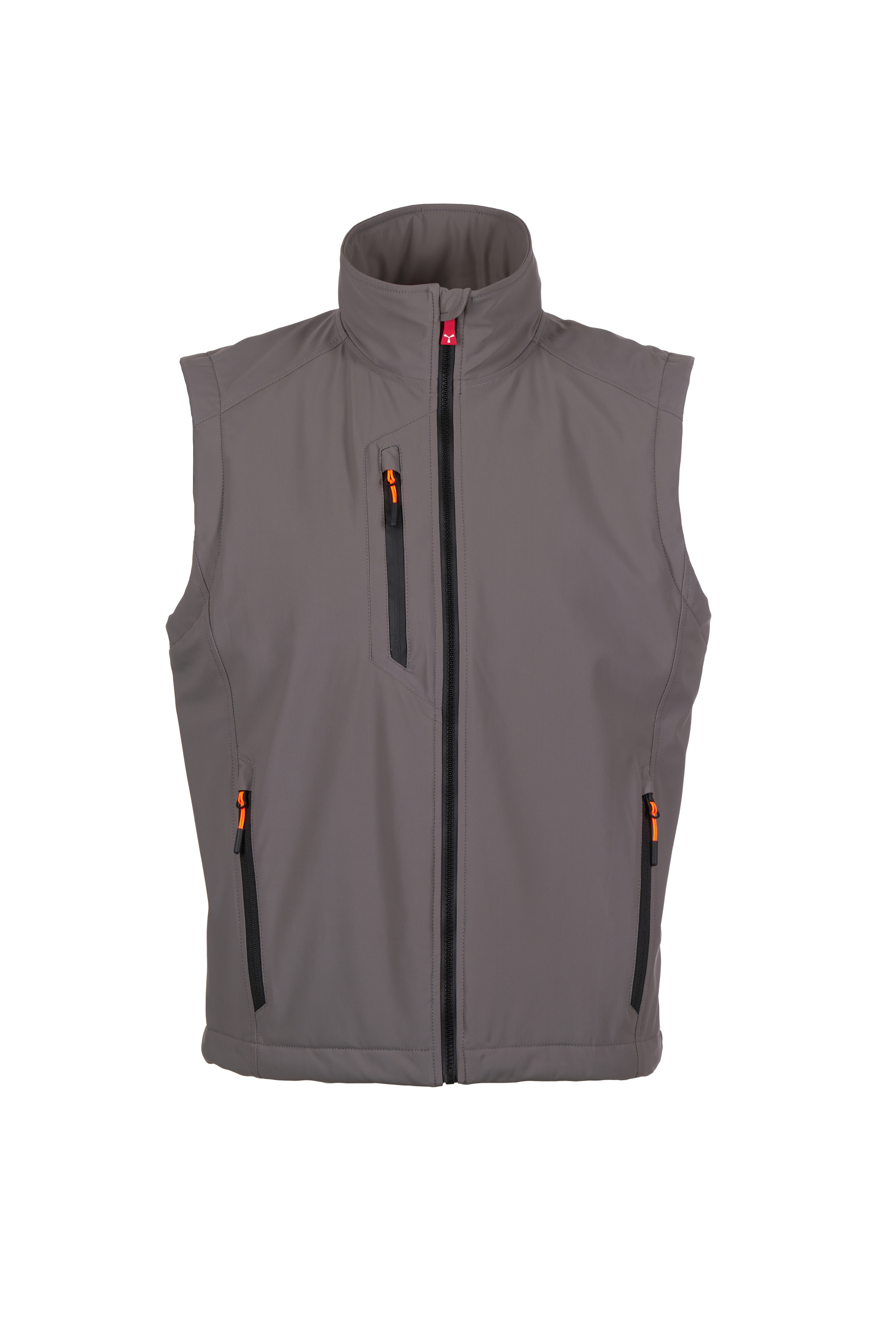 Chaleco soft-shell con acolchado ligero de 100 g/m², de hombre, cierre con cremallera SBS con cursor de metal con sistema de bloqueo semiautomático y tirador personalizado. Banda retrorreflectante en la parte posterior de la cintura. Dos bolsillos laterales con cremallera, un bolsillo en el pecho con cremallera recubierta. Tiradores fluorescentes. Un bolsillo de ojal interior, cerrado con velcro. Bajo ajustable con topes personalizados.