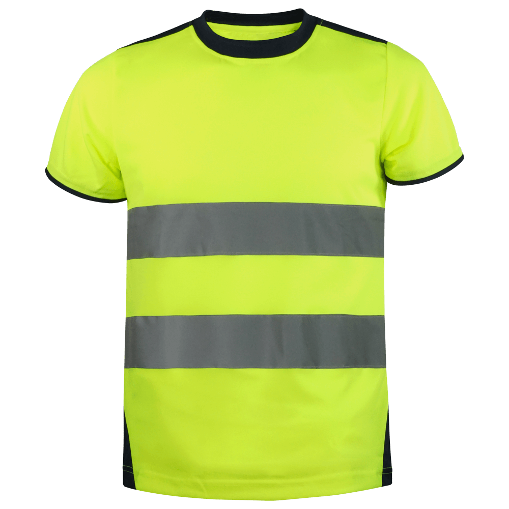 Camiseta en poliéster micropiqué combinado de alta visibilidad.
