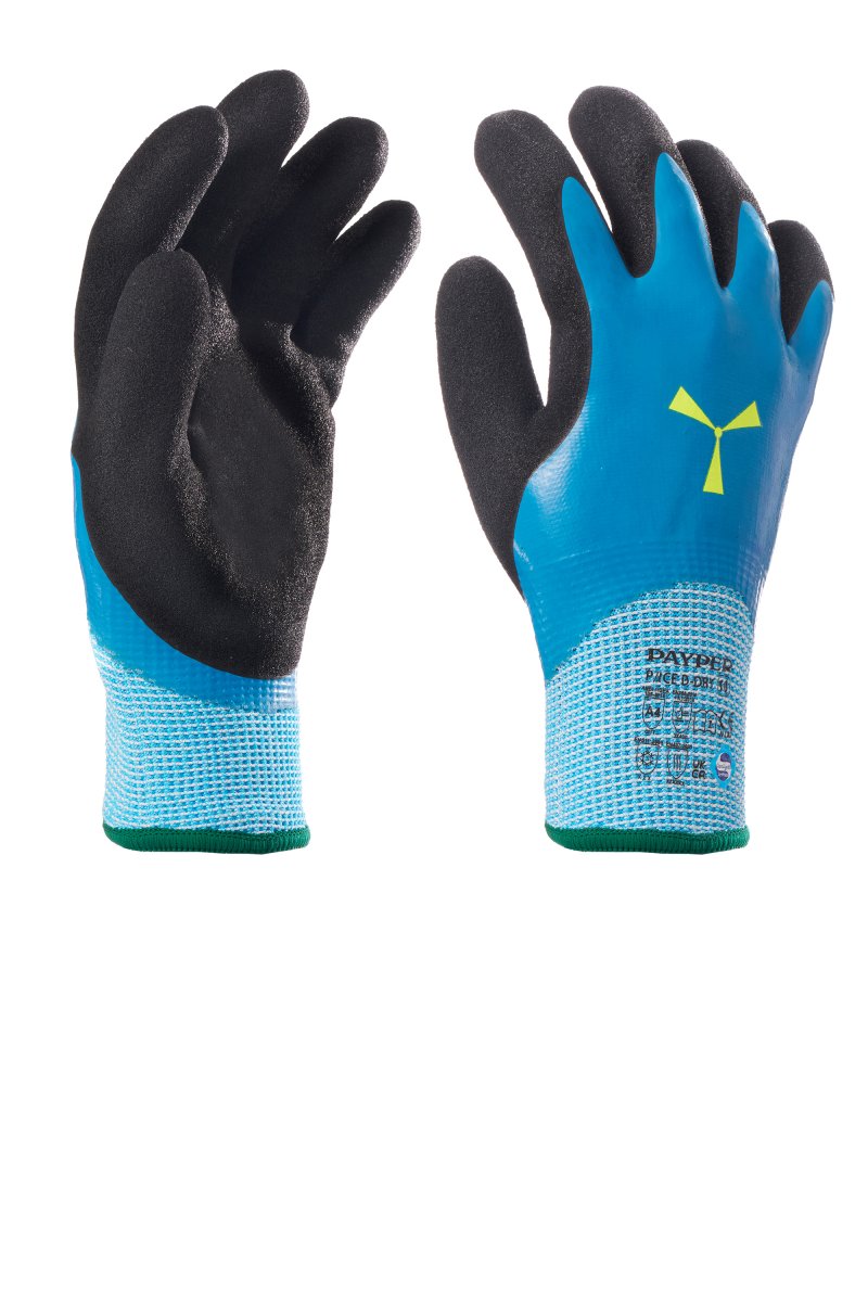 Nylon con interior vulrizo. PVC con tratamiento HPT hasta medio torso. Galga 15 EN 388:2016+A1:2018 3231X EN 511:2006 X2X