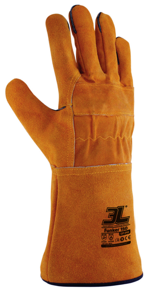 Piel Serraje Bovino. CE II CAT. EN407:2004 423X4X. EN388:2016 3133X