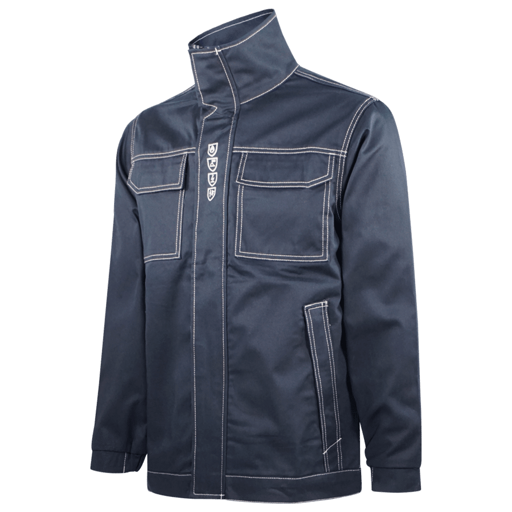 Tejido de la cubierta : Modaflame Work: 60% Modacrílico, 39% Algodón, 1% fibra de Carbono 280g. Tejido en contraste : Modaflame Work Stretch: 60% Modacrílico, 35% Algodón, 4% Elastano, 1% Fibra de carbono