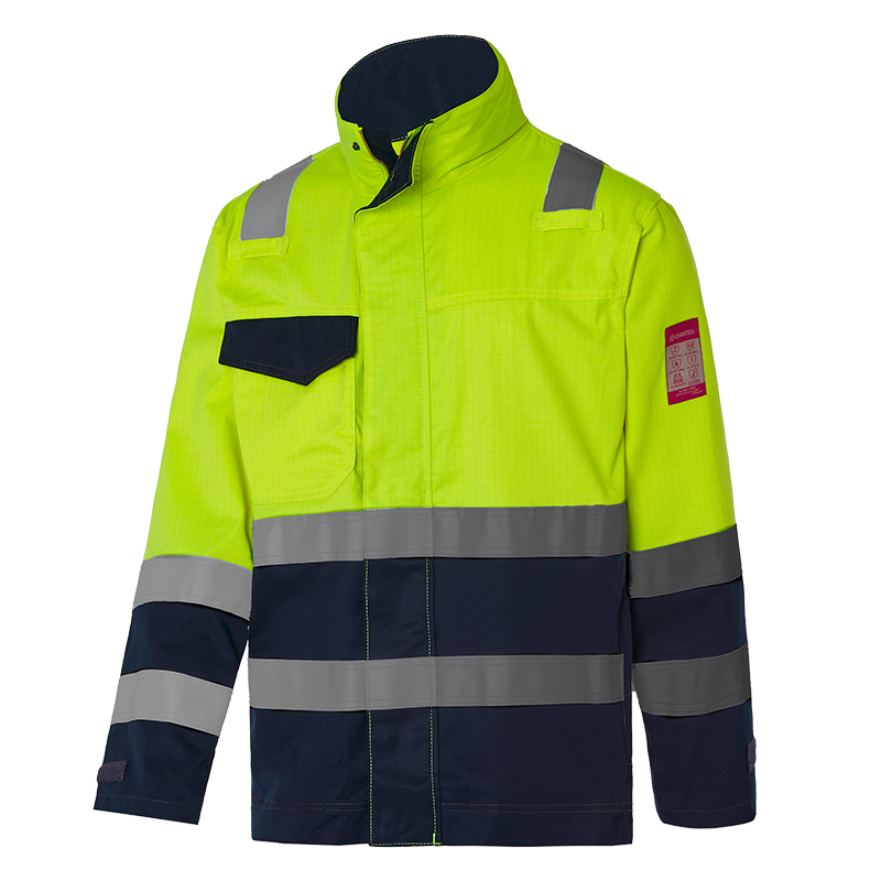 Base: 65% modacrílico, 33% algodón y 2% fibra antiestática.Gramaje: 270GSM. Flúor: modacrílico multifibra.